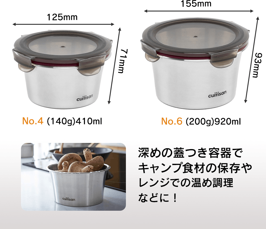 Cuitisanは重ねてきれいに収納(スタッキング)できるので、キャンプ時にかさばりません。