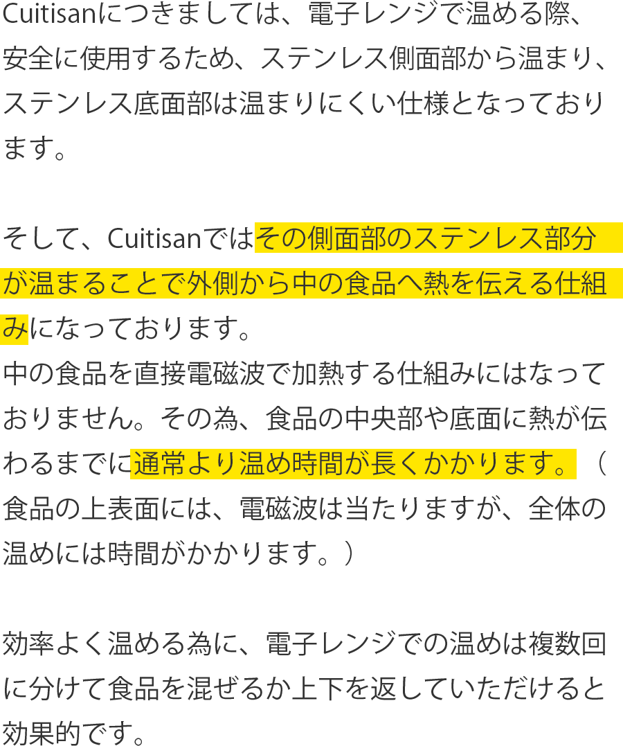 A:Cuitisanは、電子レンジ 、スチームオーブン、オーブンで使用できます。ご使用する際は蓋は外してお使いください。
