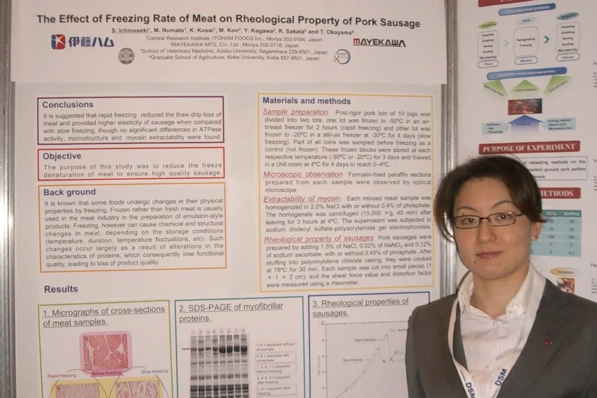 学生の頃、食への興味から畜産製造学を学び、お肉の加工の面白さにはまり、大学院へ進み博士号を取得しました。大学祭で自分達で製造に関わったソーセージ販売をしたり、学会発表で国内外の食肉加工文化に触れ、さらにお肉の加工の魅力にはまっていきました。