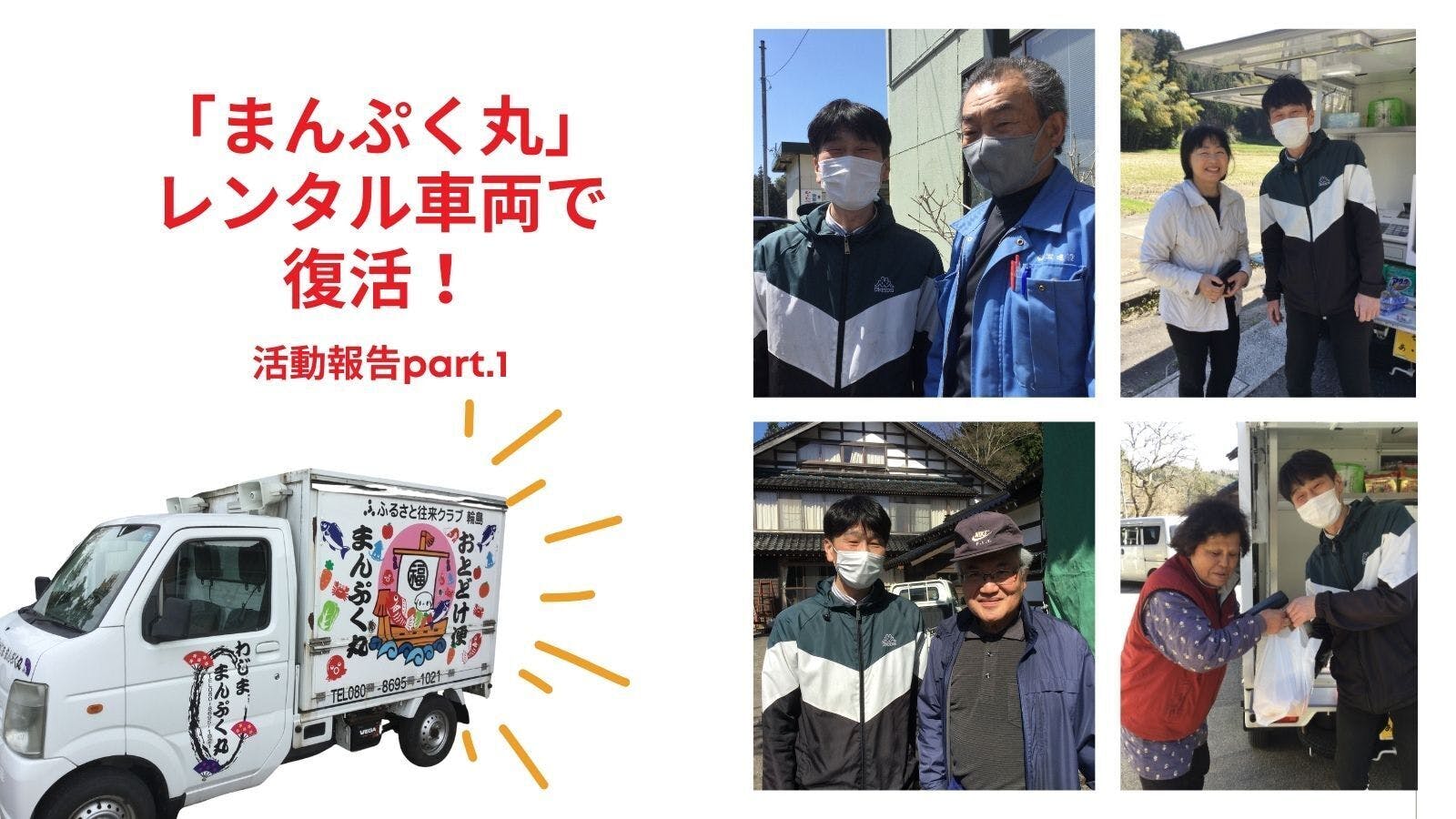 私たち「まんぷく丸」の活動は、能登輪島の中山間地域の人々に商品と笑顔を届ける、意義ある仕事だと確信しています。この仕事の継続には、皆さんのお力添えが必要です。ぜひとも私たちを助けていただきたい、そう切に願っています。