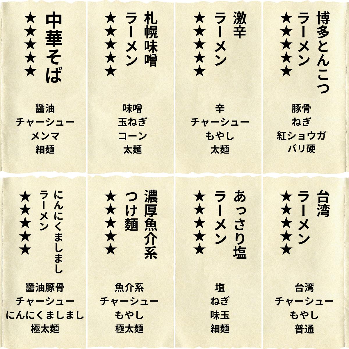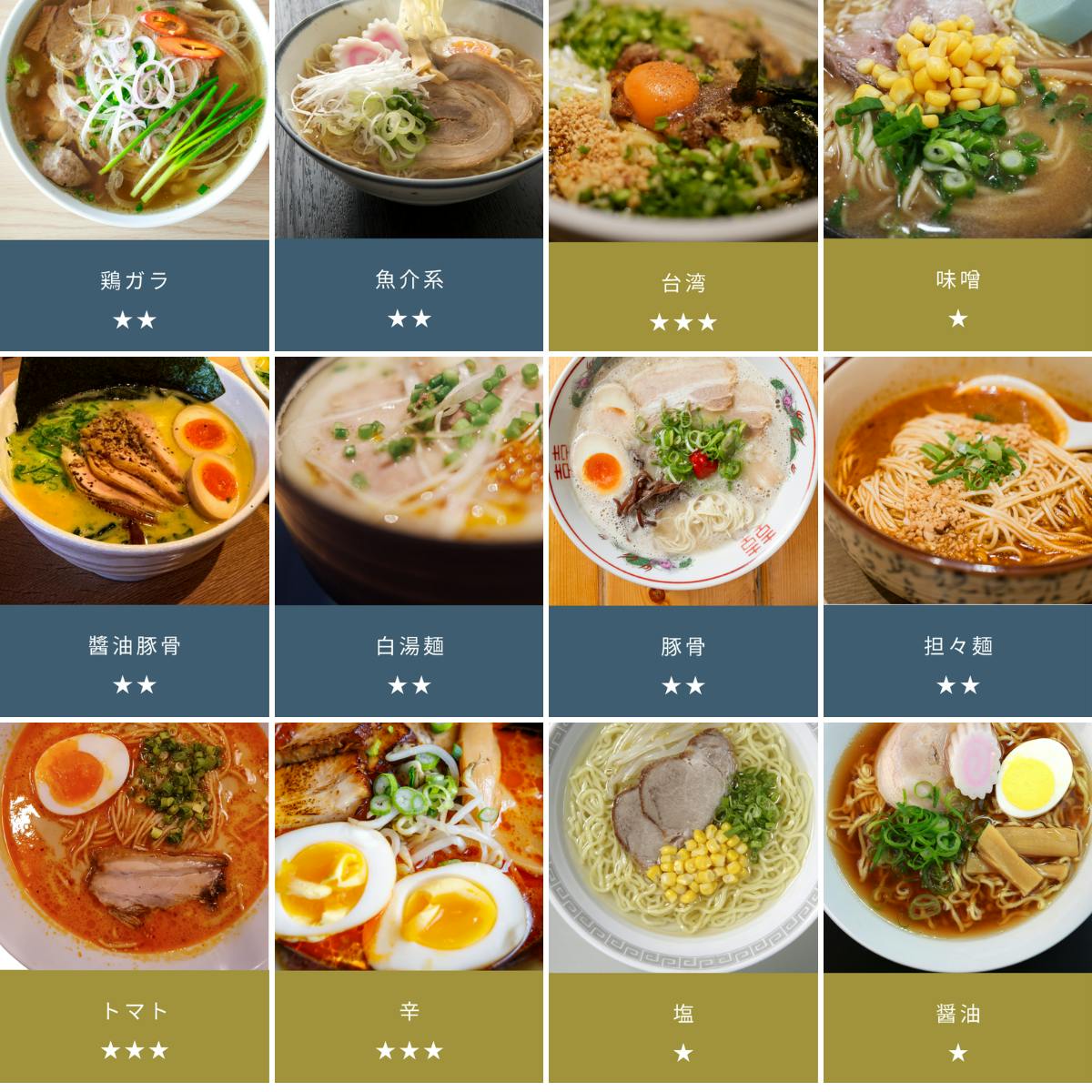 麺の面積や量が多いほど★が多い ★の選定はあくまでも個人的な見解です