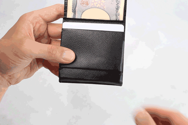 例えば、使用頻度が低い高額紙幣を紙幣入れの一番下に置いておき、フラップで留めておきます。そして、使用頻度が高い1000円札をフラップの上に置くことで、支払い時に素早く紙幣を取り出せるようになります。