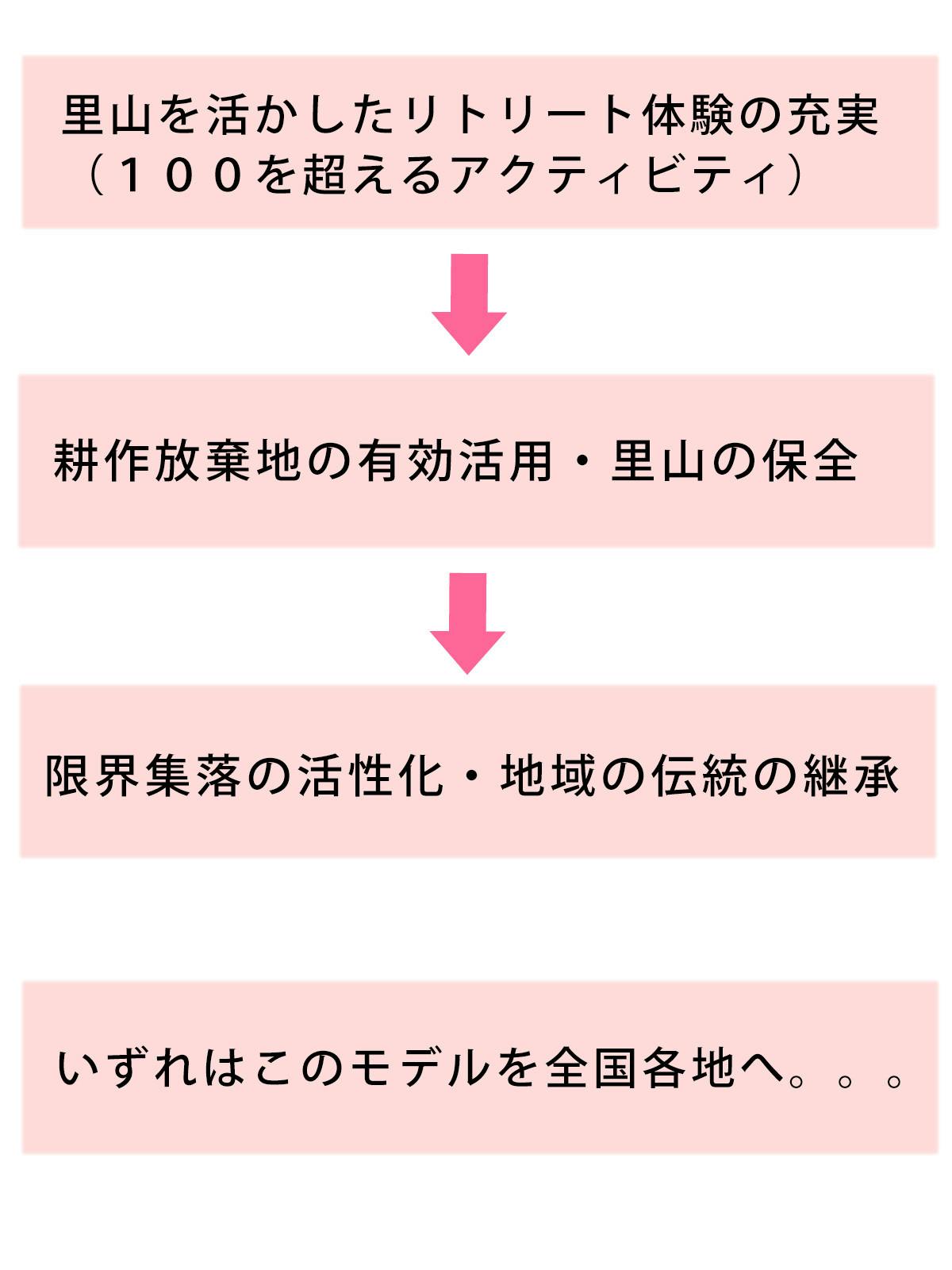 そして「自然の力を活かした里山のライフスタイルを広めることで、自然と共に人が楽しく生きていくための文化が継承され、地元地域も活性化していく」