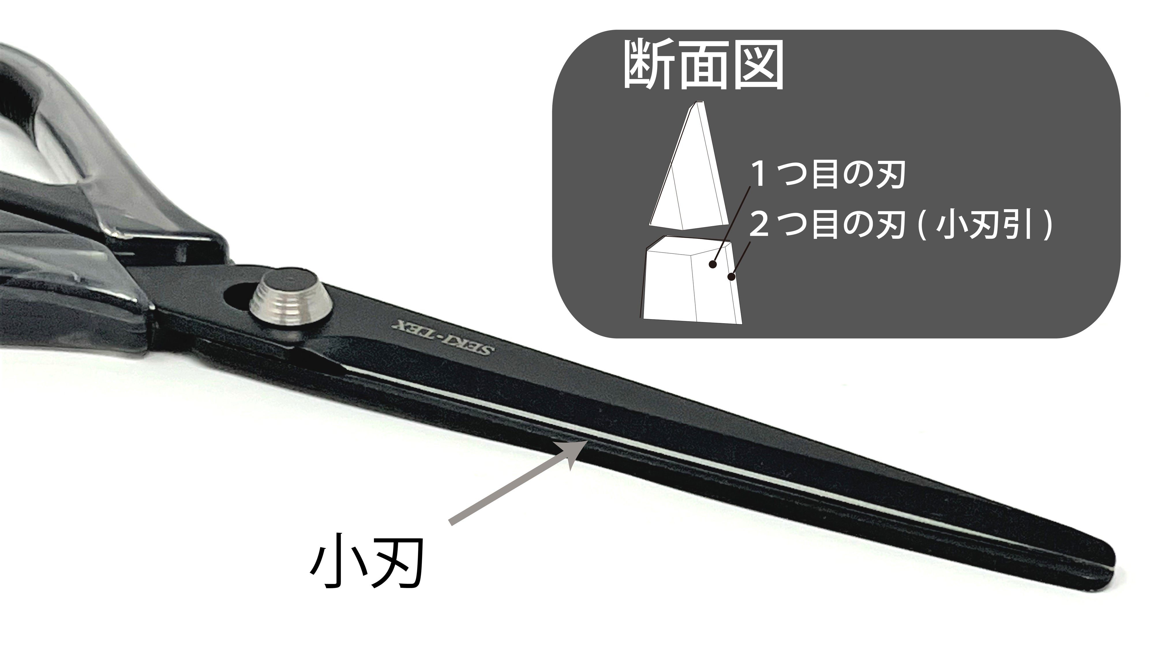 ニッケン刃物製造のハサミは、以下画像のように刃先が2段の刃付け加工がされています。