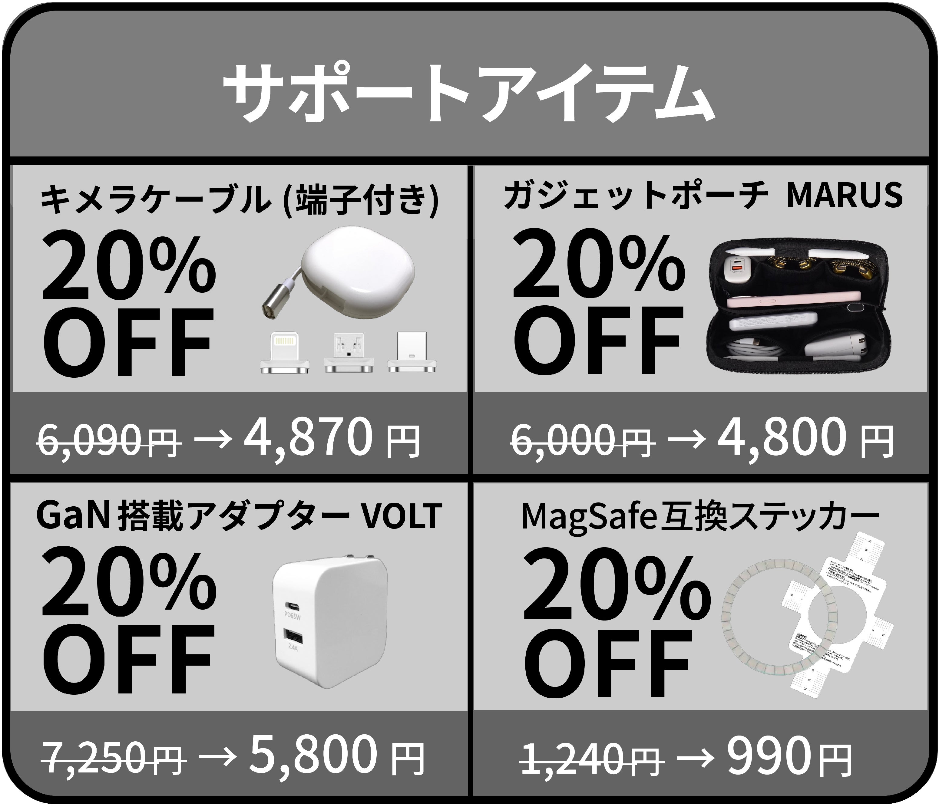 今後も、適正価格にてお客様へ更なる利便性を提供するために弊社独自規格での製品及び、革新的な商品の開発に努め、独創性のあるガジェットブランドとして努めてまいりますので、見守ってくださいますと幸いです。