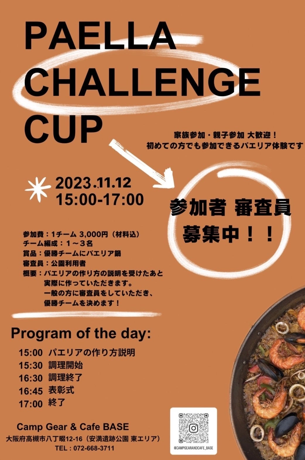 私達の店舗では1年に数回、家族でも参加できる一般参加のPAELLA CHALLENGE CUPを開催しています。パエリアの説明を受けた後、実際に作っていただきます。公園利用者に審査員を手伝っていただき、優勝チームを決めます。前回のCUPでは家族が優勝しました。よかったら、こちらのイベントに参加しませんか?
