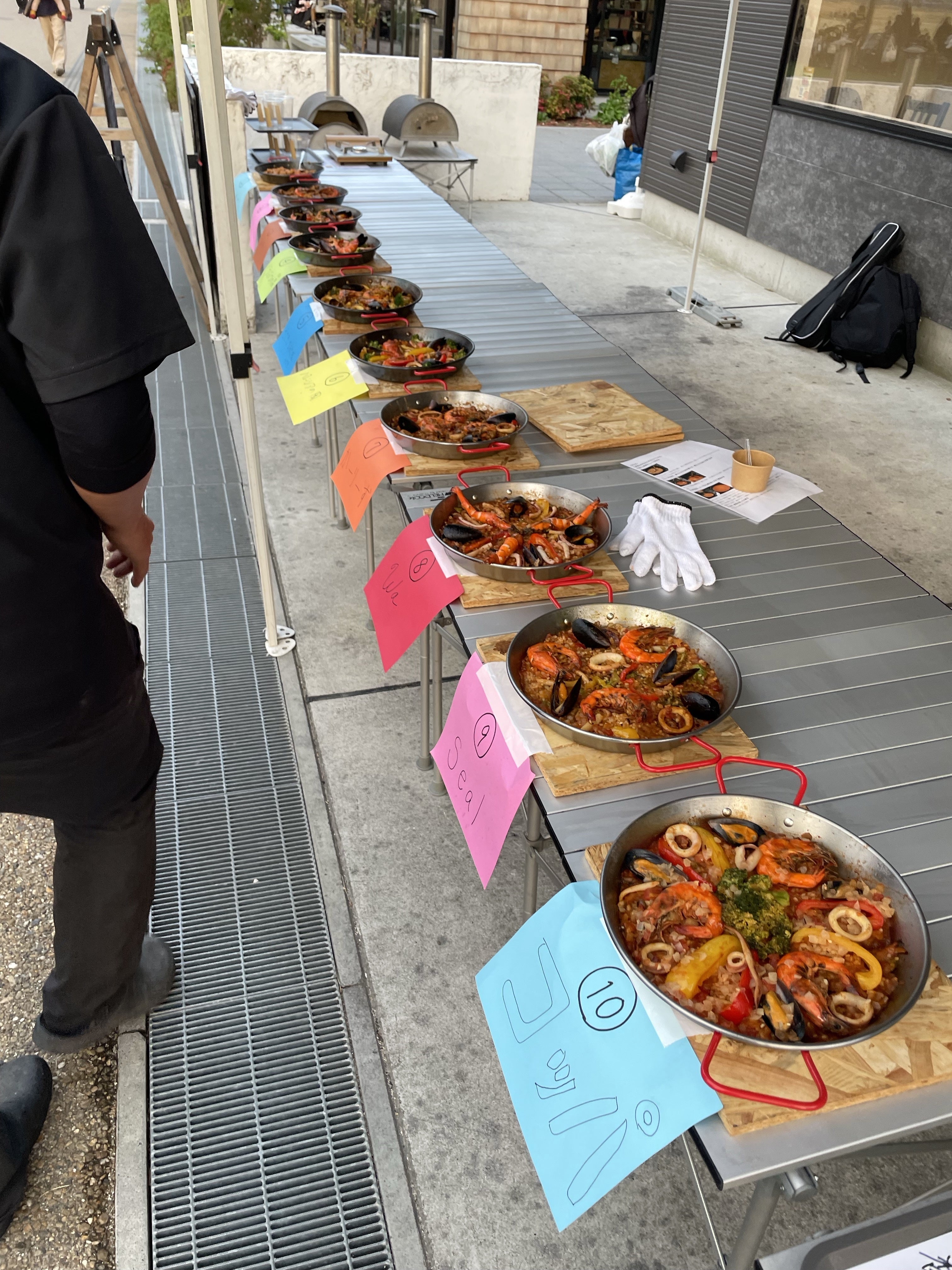 2024/05/27 18:462024年5月26日PAELLA CHALLENGE CUPを開催。6組のチャレンジ参加があり、軒先にいる一般の方に投票いただきました。時間を合わせてパエリアを調理します。用意してある材料とレシピで挑戦します。デザインや味つけはチームそれぞれ。一般の方にご試食いただきました。また、チャレンジカップ前では、昼にパエリアの実演販売を開催しました。spain bar & cafe NEUTRALの檜尾シェフ、松下オーナーも実演販売しました。 もっと見る