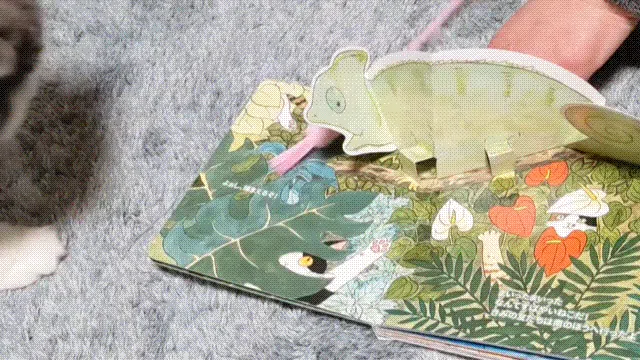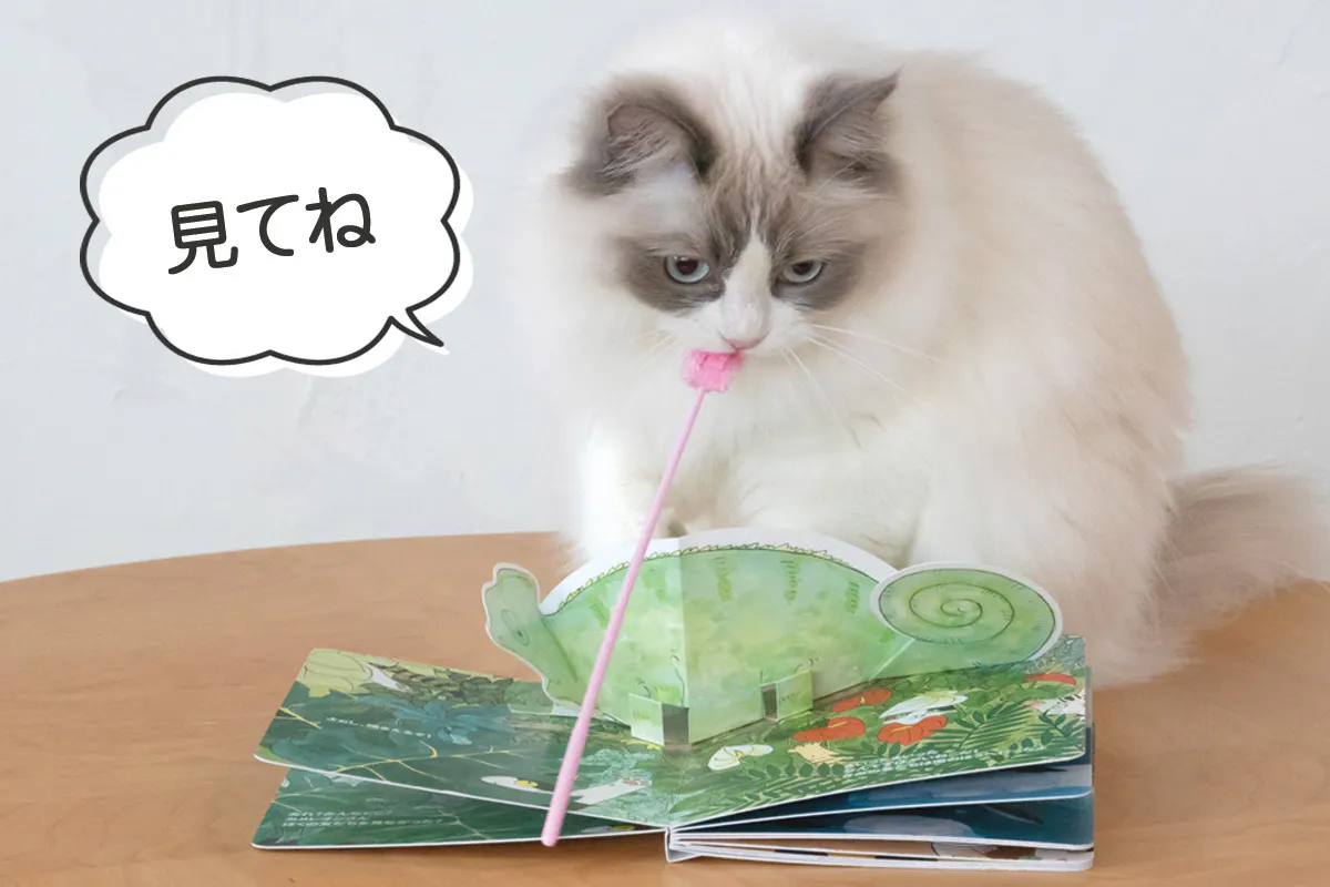 「猫と愉しむ飛び出す絵本」は一般的な仕掛け絵本ではありません。ページをめくるたびに愛猫がドキドキ、ワクワク!ついつい手を伸ばしてしまう仕掛けをプラスしました。いつもは禁止している本への猫パンチや猫キックもこの絵本なら大丈夫!
