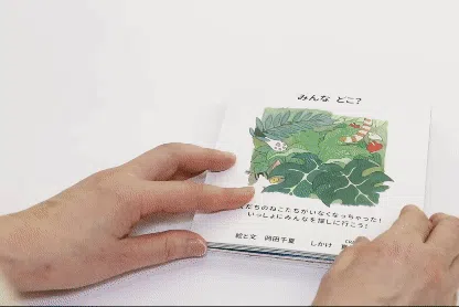 仕掛け絵本の仕掛けは1点1点手作業で貼られていることを。