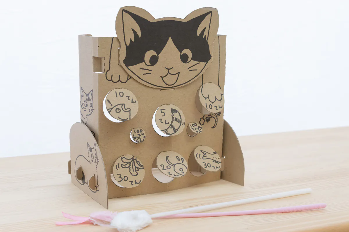キャッツウェルケアさんのねこたちにも何度も審査をしてもらい、試作を重ね、多くの大人ねこでも遊べる仕掛けに生まれ変わりました!(もちろん全員が遊んでくれるわけではありません。。。遊んでくれない子もいます)
