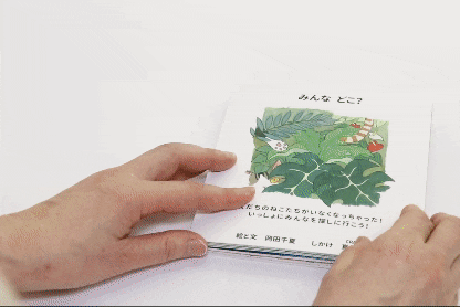 一人で正面から読む場合、ねこたちと遊ぶために裏側から見る場合、どちらからでも楽しめます。