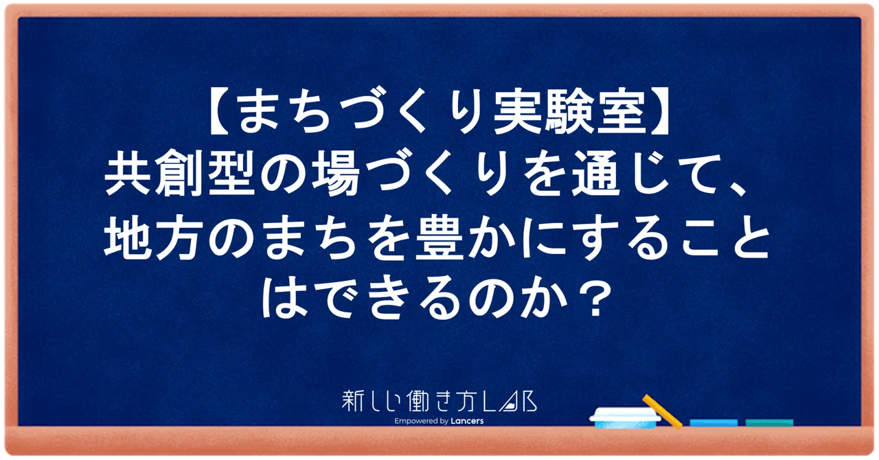 実験テーマは「【まちづくり実験室】共創型の場づくりを通じて、地方のまちを豊かにすることはできるのか?」。