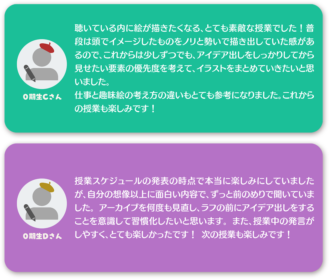 ※リアルタイム参加の場合はイラストアカデミア在校生と一緒に参加することになります