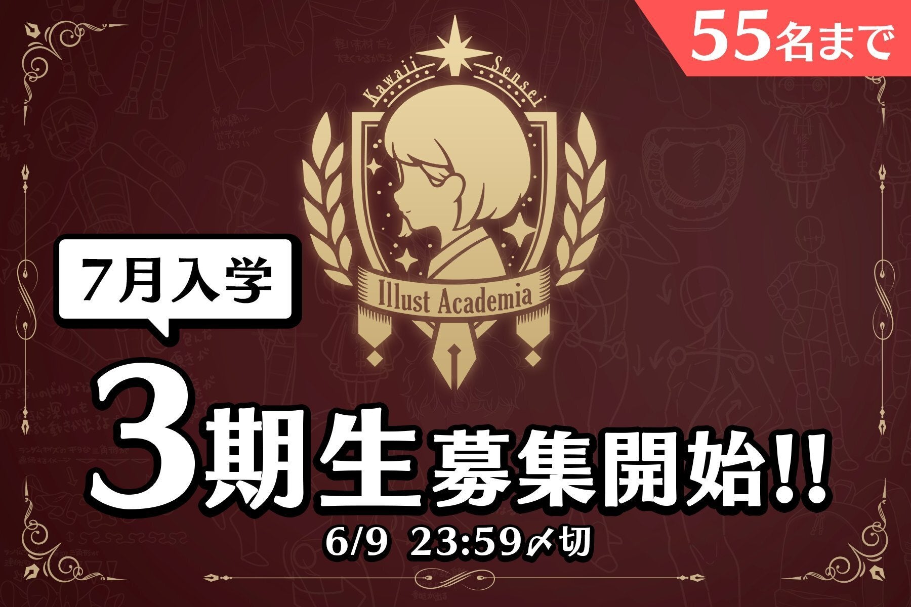 • クラウドファンディングでは応援ありがとうございました!イラストアカデミアも無事6月に入りまして、2期生が入学されました!生徒数はなんと300名を超え、とても活気のある校舎になっております。6月は豪華ゲスト講師の「じゅん」先生もお越しくださり、授業数も12回以上…!そしてついに!イラストアカデミア7月入学となる「3期生」の募集を55枠のみ開始致しました!!https://illustacademia.site/募集期間は6/9 23:59までとなります!入学希望の方はフォームから申し込みくださいませ!※入学保証プランをご購入の方はご応募頂けませんので、ご入学までお待ち下さい。※通信生プランの方にご応募して頂くことは可能ではありますが、通信生プランの返金は出来かねますのでご了承ください。-KawaiiSensei、およびイラストアカデミア運営チーム もっと見る