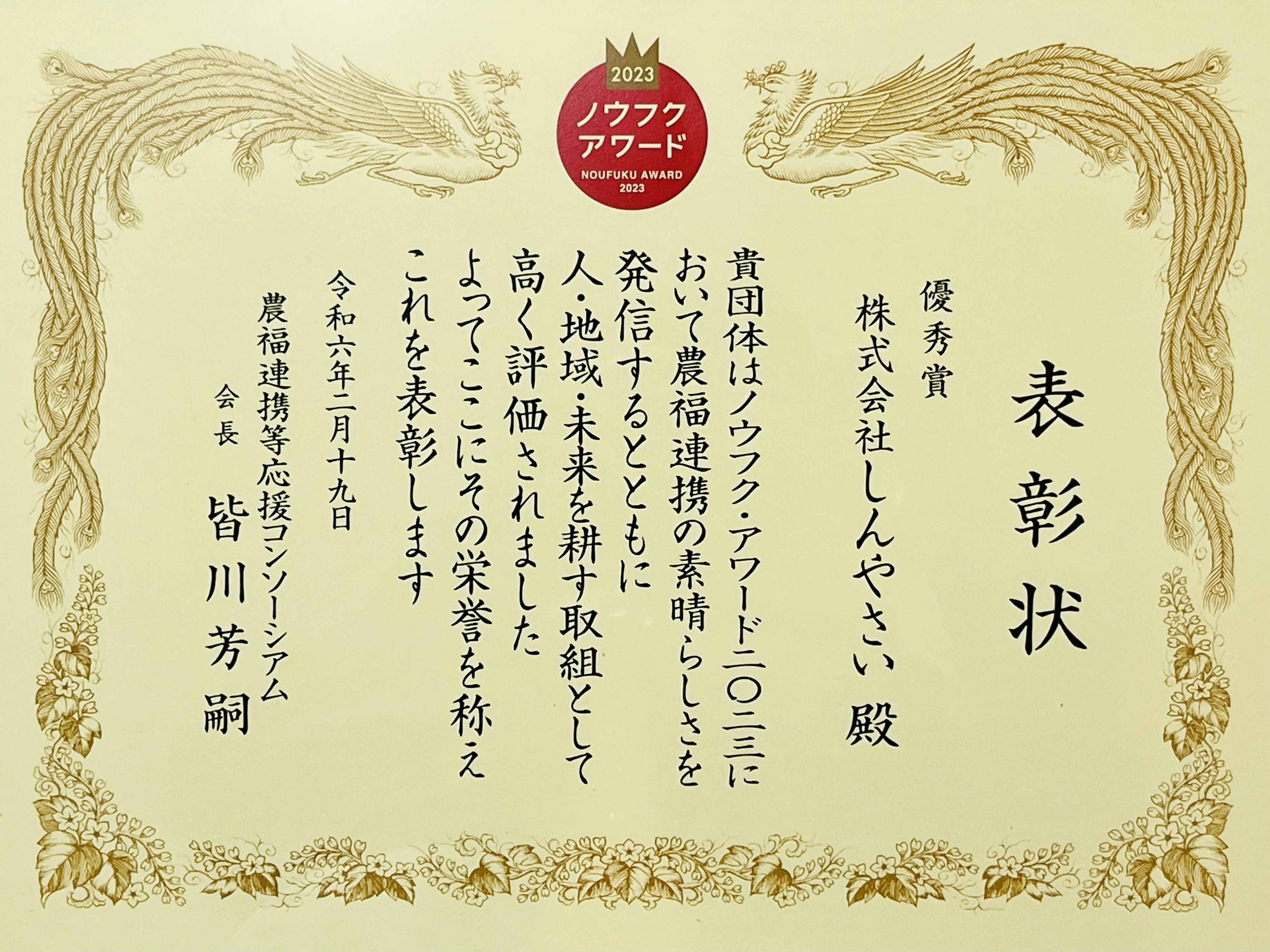 【ノウフク・アワード2023】優秀賞を受賞! → ノウフク・アワードとは??
