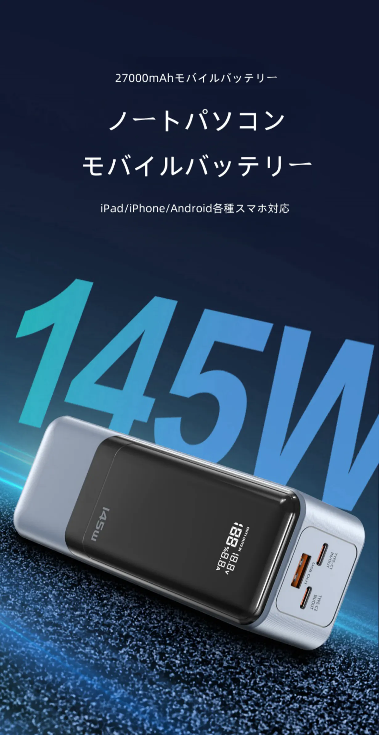 大容量バッテリー(27000mAh)