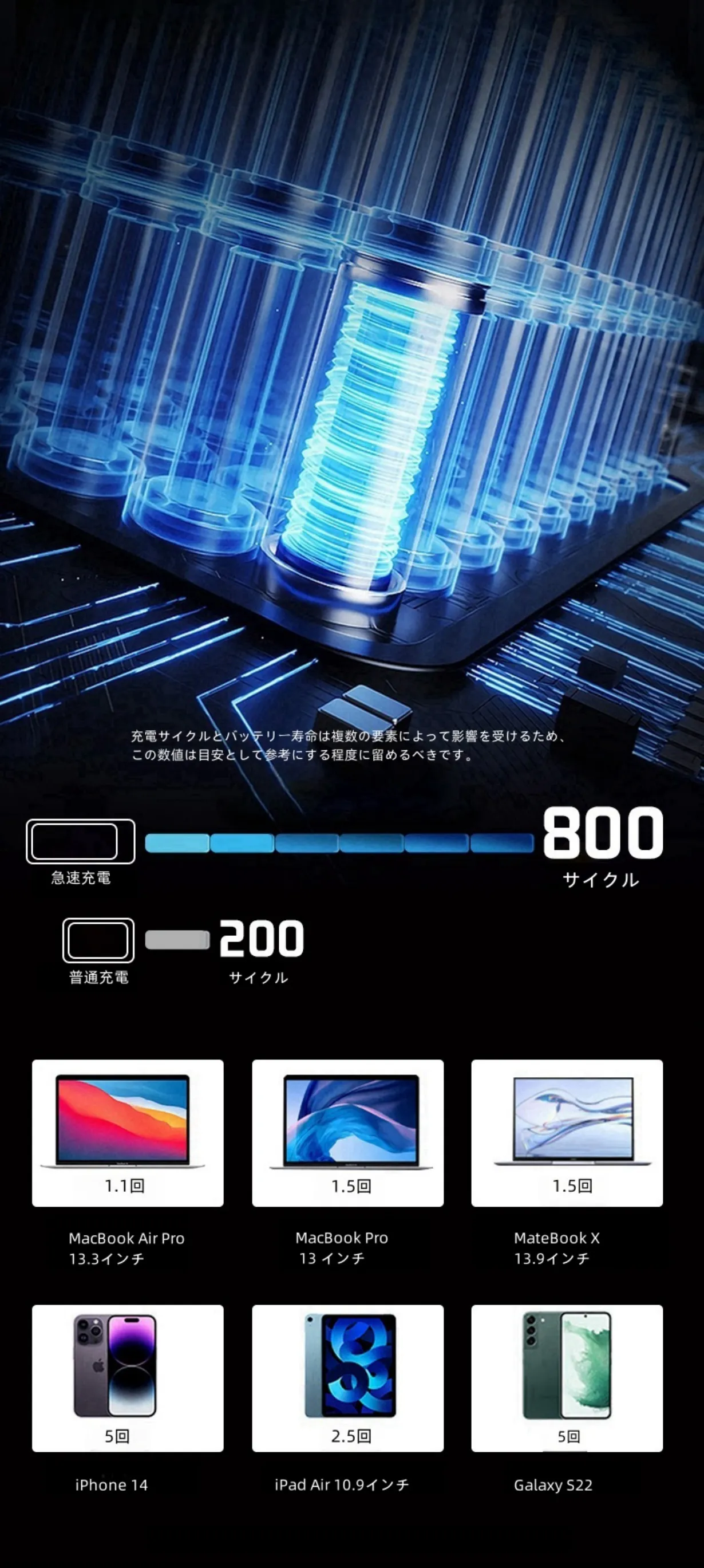 800回の充電サイクル対応
