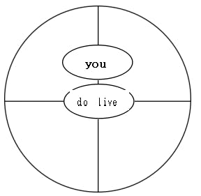2.十字円の中心から1つ上に you を書き入れ、○で囲みます。