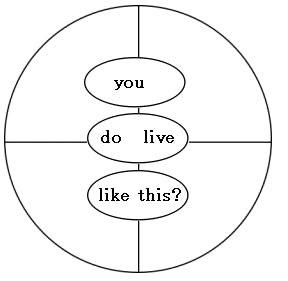 十字円に英会話文を書き込む。