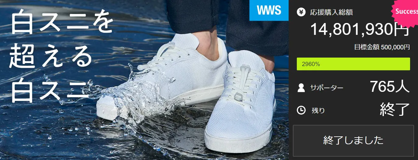 2024/06/04 10:16いつも応援いただき、ありがとうございます。温かいご支援のなか、当クラウドファンディングは6月29日をもちまして終了致しました。改めまして、ボーダレススニーカーの応援購入を通じたご支援を賜りましたこと心より感謝申し上げます。尚、発送準備が完了致しましたので本日6月4日(火)より順次発送を開始致します!以下に注意点を記載致しますのでご確認をお願い致します。========================================■注意事項■◎お客様都合によるサイズ・カラーの変更や返品はお受けできかねます。◎お送りした商品が不良品の場合且つ、以下2点に該当する場合のみ変更を承ります。①屋内外未使用であり、不良箇所以外に傷や汚れ等が見受けられない②商品到着から1か月以内である◎不在によって返送となった場合、再発送費用はお客様ご負担(着払い)となりますのでご注意ください。========================================WWSは今後も常識にとらわれない発想で“あったらいいな”をカタチにすることで、社会の多様なニーズに応えていきます。より良い商品を世界中のお客様に提供し続けられるよう邁進していきますので、引き続きWWSをよろしくお願い致します。応援ありがとうございました!プロジェクト関係者 一同 もっと見る
