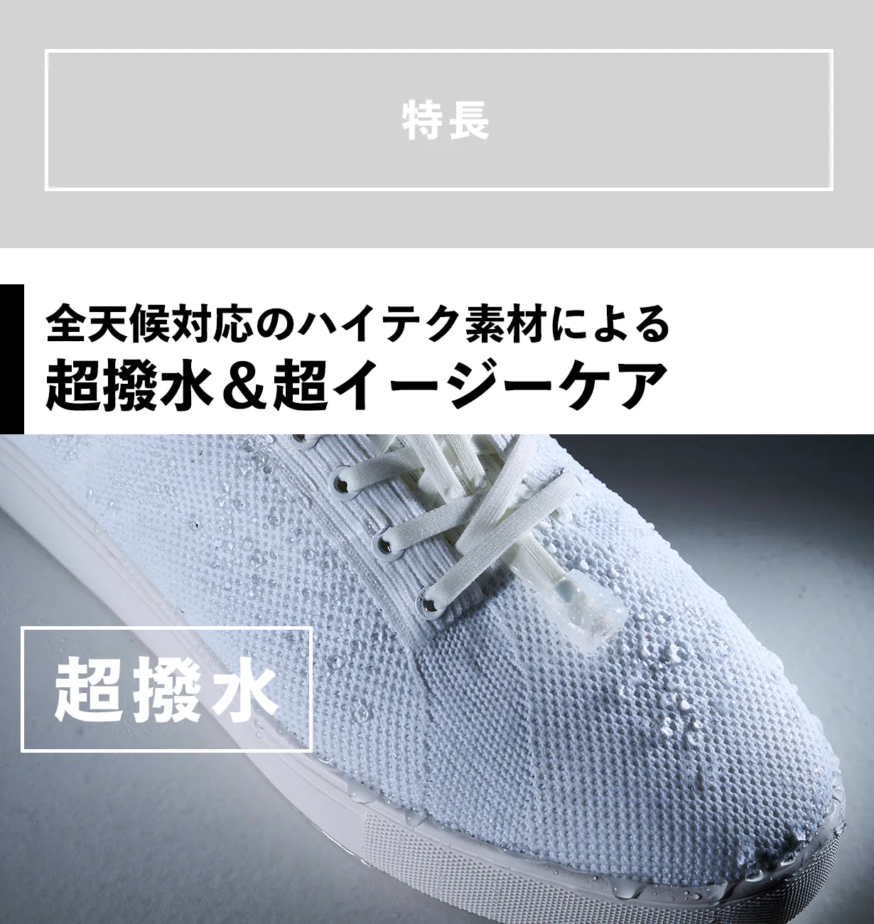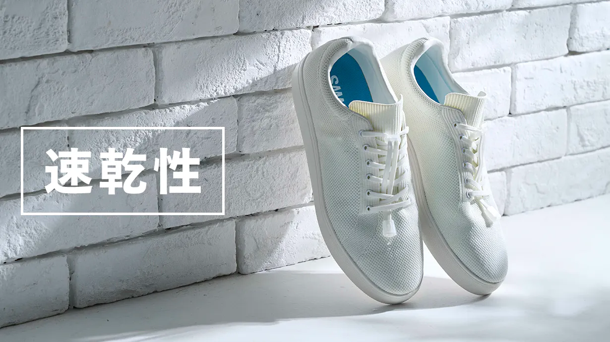 私たちが挑戦したのはどんな天気でも安心して履けて、1日中快適に過ごせる究極の白スニーカー。履きやすい、脱ぎやすい、歩きやすい、洗濯機で洗えてすぐ乾き白さをキープするのが楽。それでいてスニーカー好きな方に喜んでいただけるカッコよさ。ビジカジからお休みの日の普段履きまで、毎日でも履けるボーダーレスなシューズです。