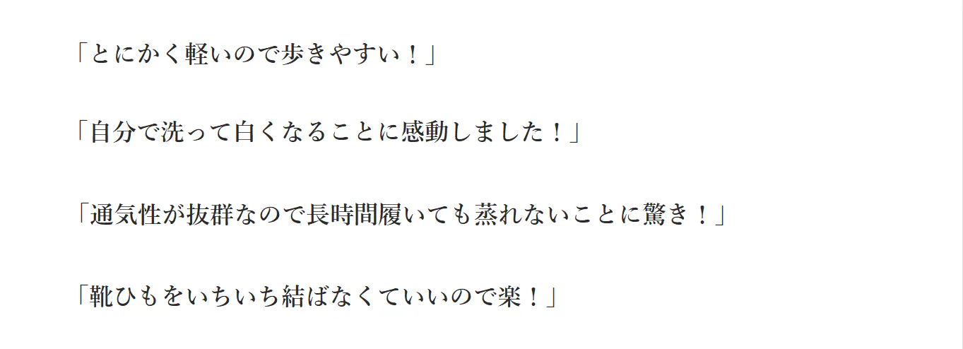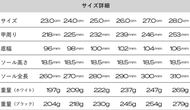 驚きの超軽量。その軽さは足の疲れへの大きなアドバンテージとなります。