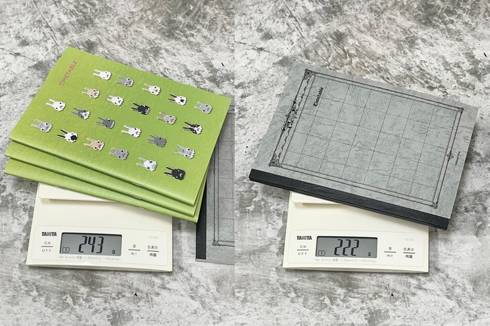 このたびは石田製本さんのご協力により、軽くて開きのよさを保ったまま、年1冊タイプの大人の時間割帳が作れることになりました。