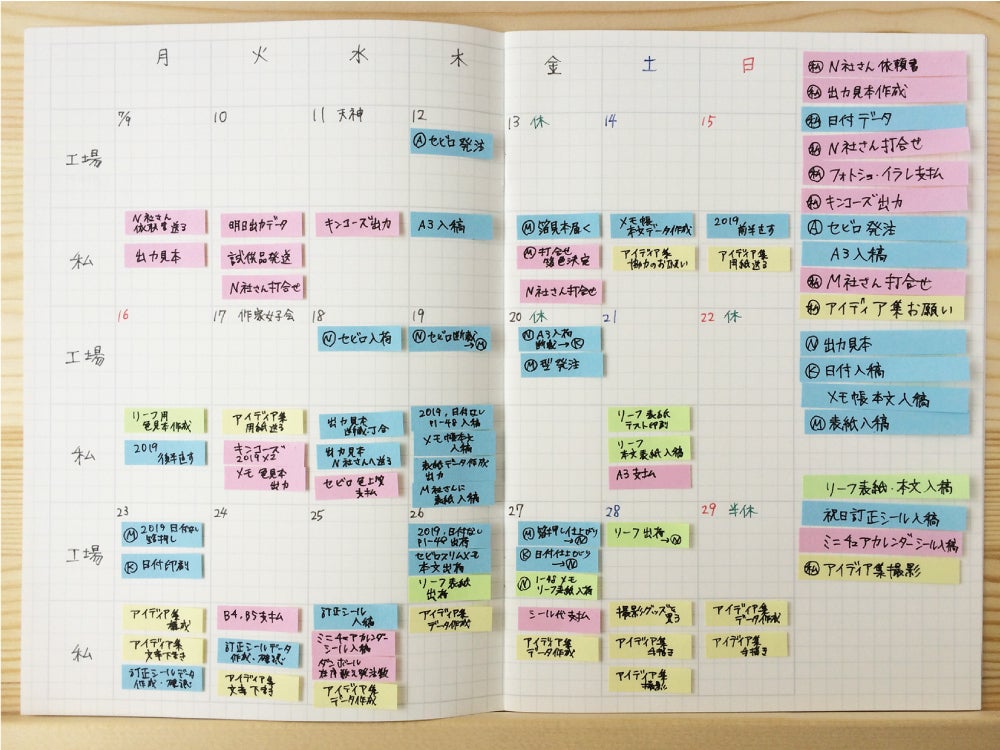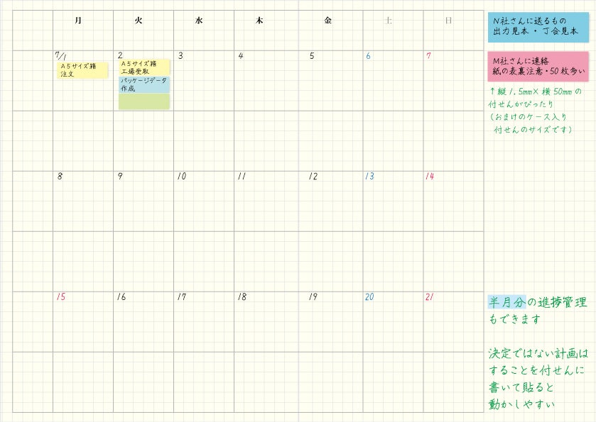 前倒しになった場合、ずれ込んだ場合、付せんを動かせるので簡単です。