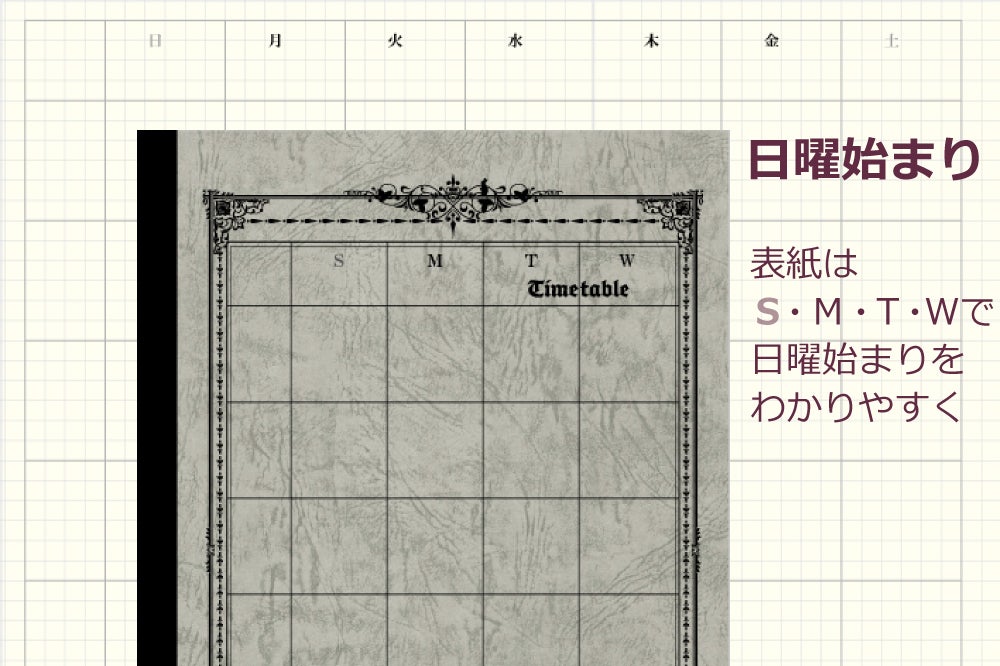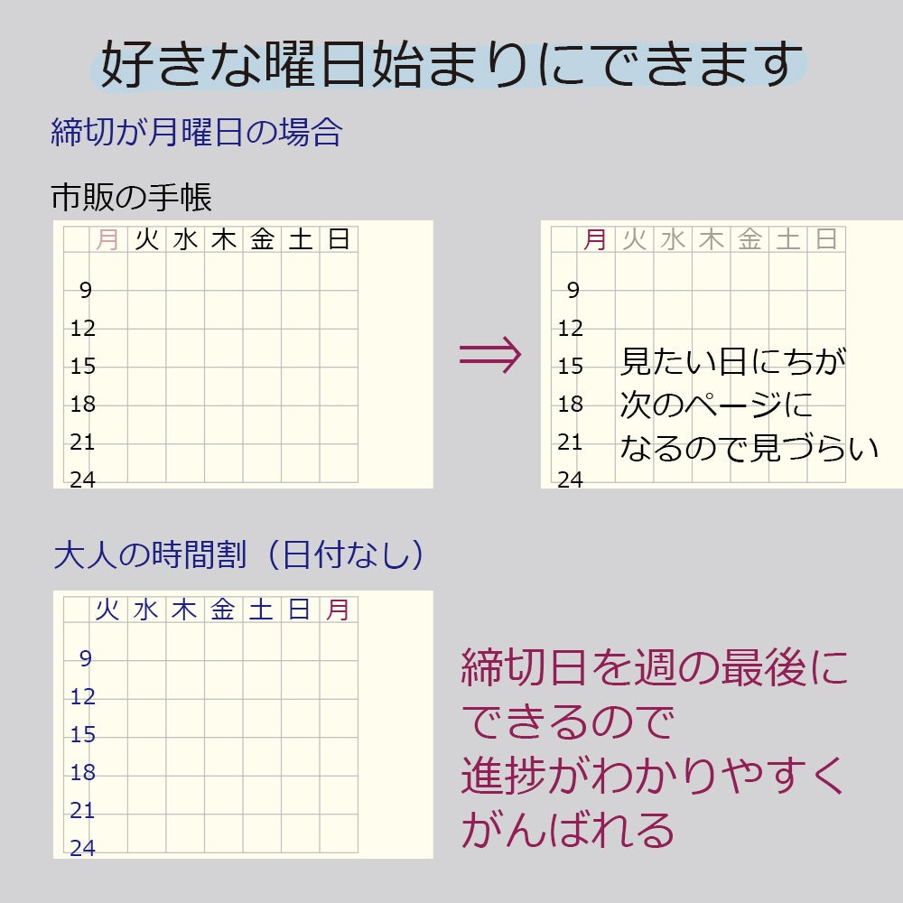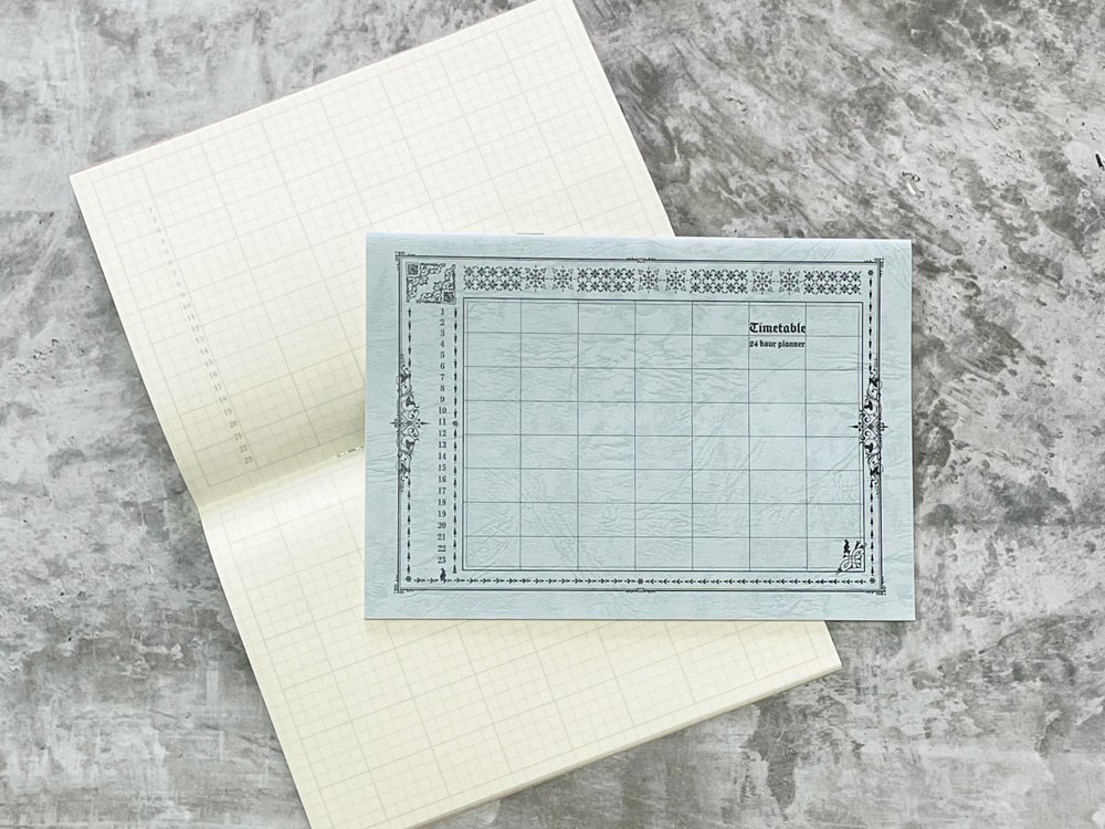 手帳メーカーが製造する手帳の本文フォーマットとして大人の時間割帳のご利用。