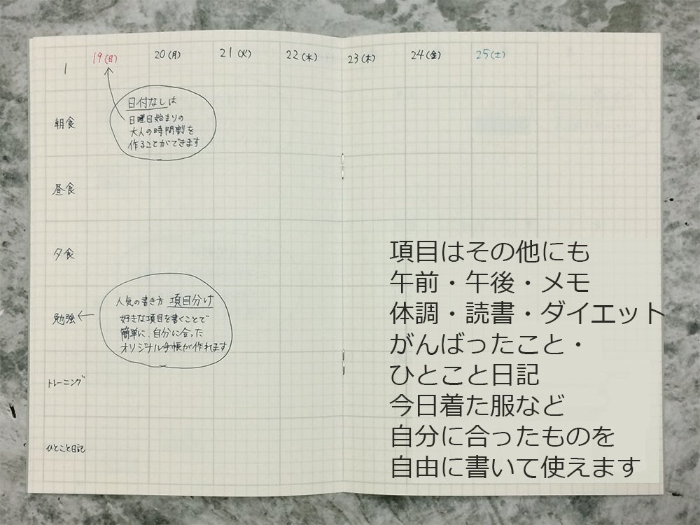 大人の時間割は小学生の時間割と、大人の手帳のいいとこどり。