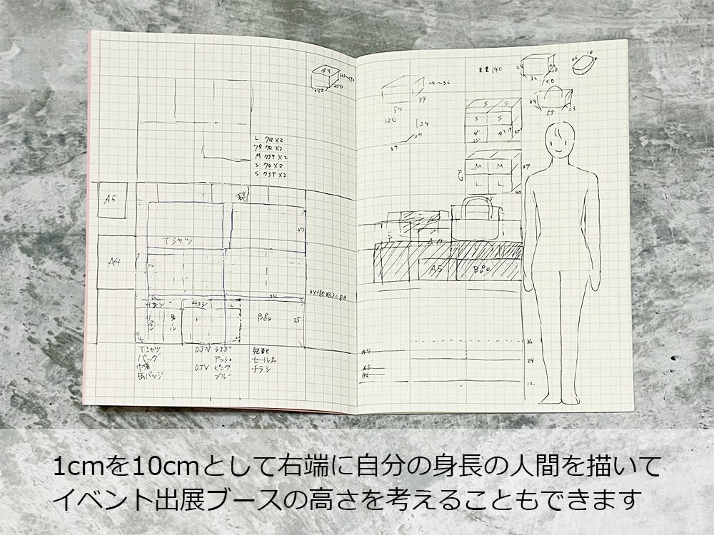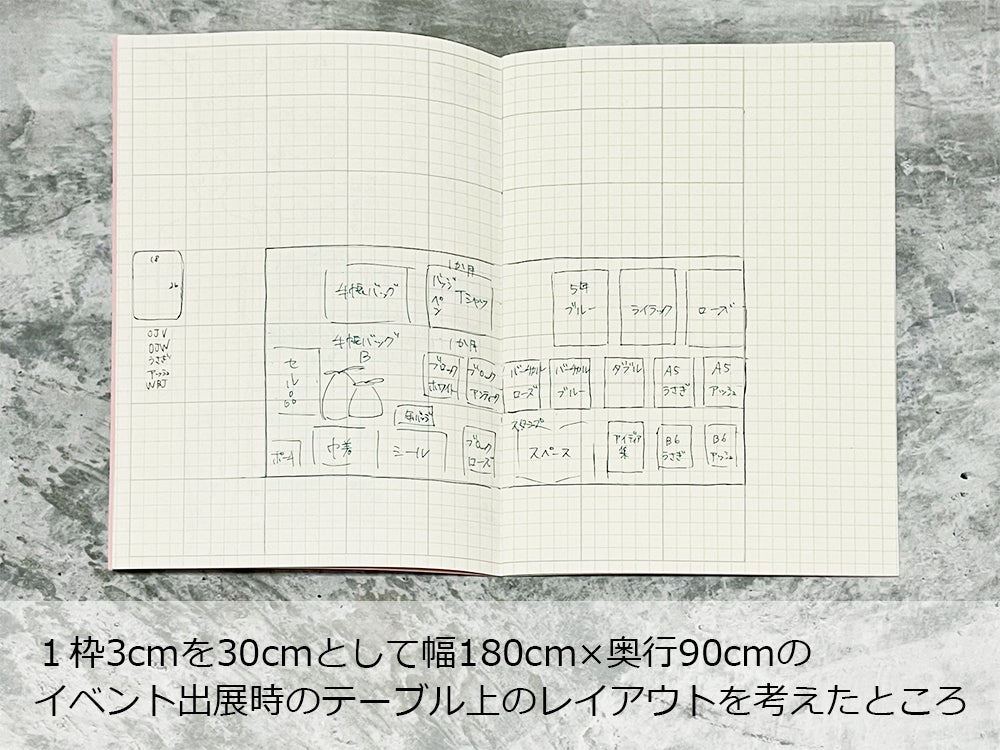 右側の方眼スペースは、ノベルティのケース入り付せんを貼るのにちょうどいいサイズです。