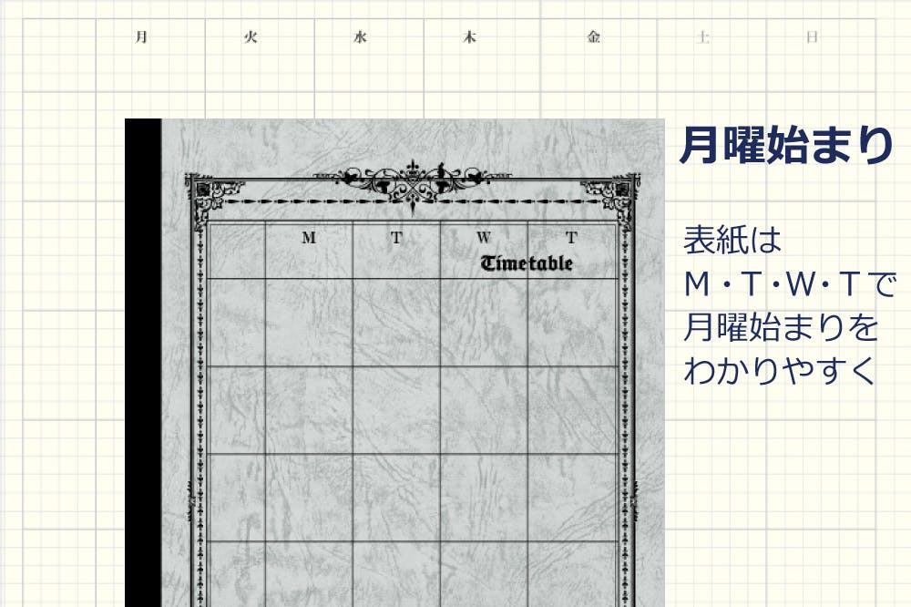 手帳メーカーが製造する手帳の本文フォーマットとして大人の時間割帳のご利用。