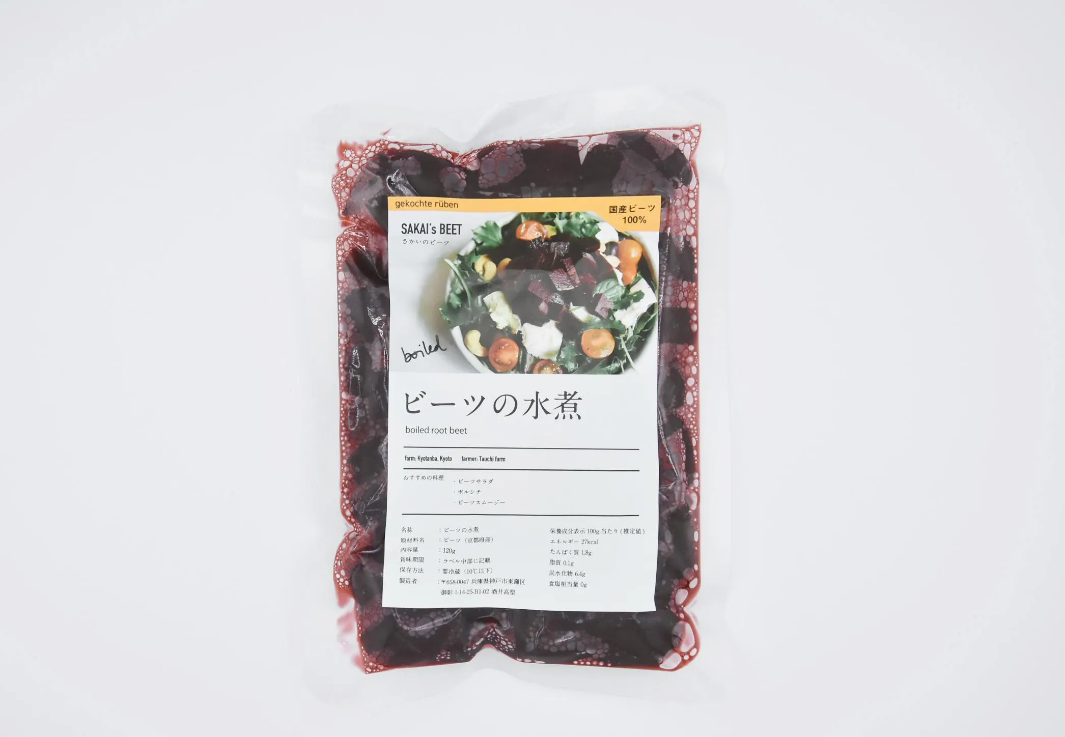 僕らの一番最初の商品はダイスカットした「ビーツの水煮」です。初めてビーツを食べる人でも「気軽に」「美味しく」食べてもらえるために、100回を超える試作を繰り返し、真空加熱をしたダイスカットの水煮のベストなレシピを導き出し商品化しました。