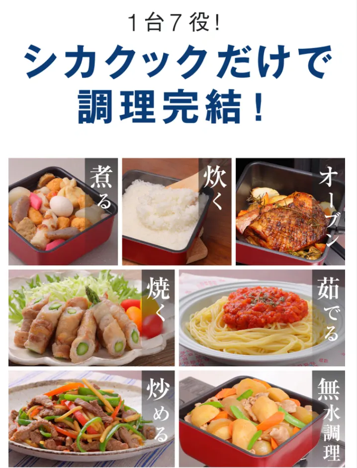 鍋で3分ゆでたものと、シカクックマルチパンで3分無水調理したものを比較した結果、ほうれん草(100g)のビタミンCは7mg/16mg(約2.2倍)ブロッコリー(100g)の鉄は0.6mg/0.7mg(約1.1倍)、カリウムは181mg/300mg(約1.6倍)、ビタミンB1は0.06mg/0.11mg(約1.8倍)、ビタミンCは47mg/82mg(約1.7倍)試験機関:食品分析開発センター2022年11月
