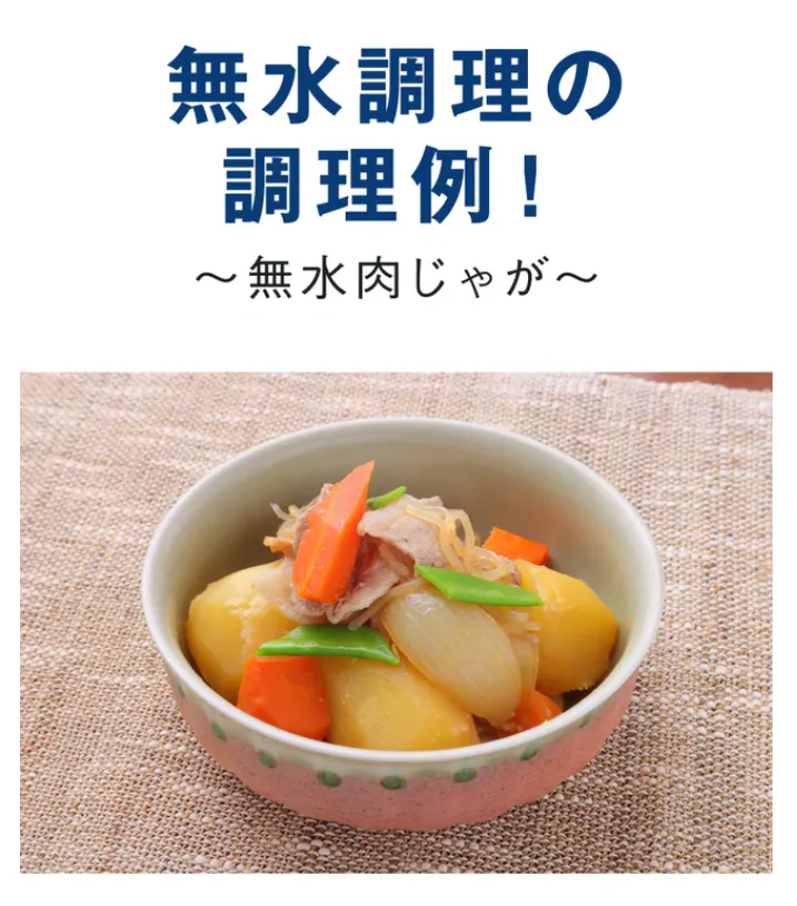 1.2倍肉じゃがの遊離アミノ酸(18種)の比較結果、通常鍋でのゆで調理では460mgに対し、シカクックマルチパンの無水調理では562mg(122.2%)試験機関:食品分析開発センター2022年12月