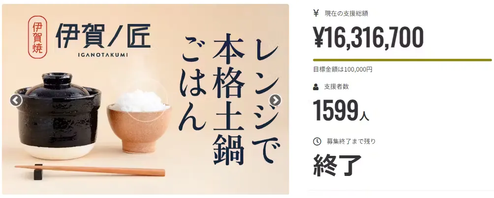 代表商品に、電子レンジ炊飯土鍋「伊賀ノ匠」など。