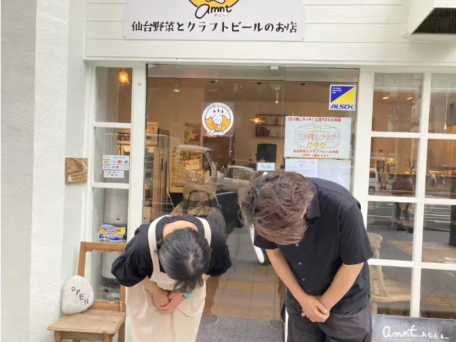 いわて蔵ビールの佐藤 航と後藤孝紀です。仙台野菜とクラフトビールの店 amnt(あむんと)様、開店おめでとうございます。また、私達のビールをドラフトやボトルでご提供ありがとうございます。