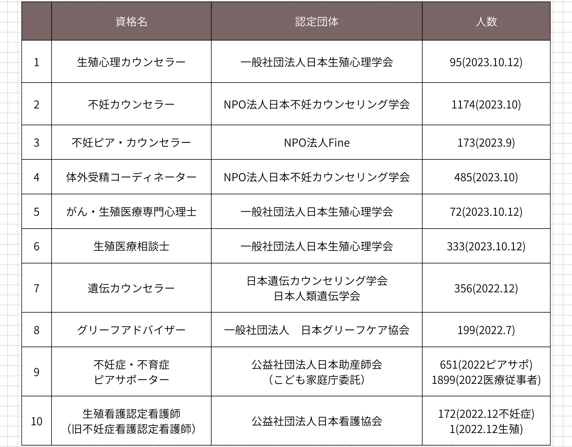 ・ 不妊に関する資格の情報 など