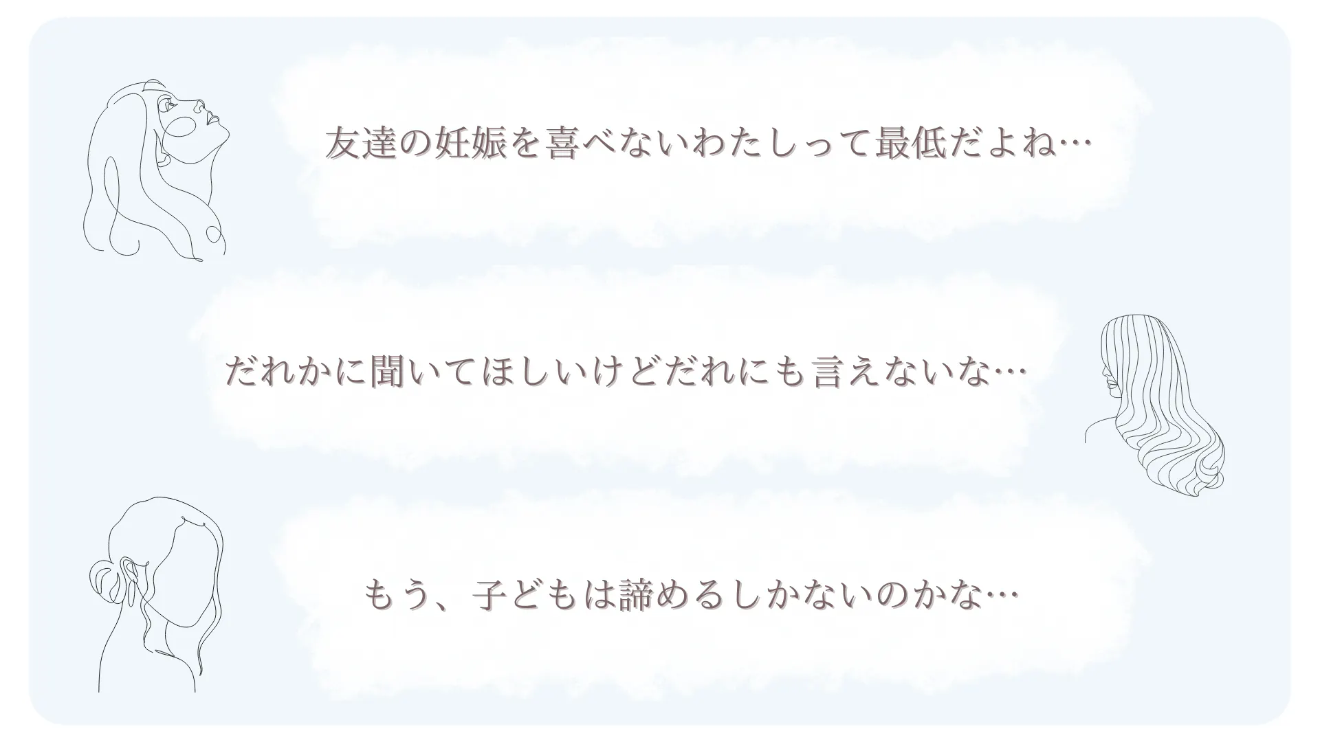 不妊治療をしていた当時の私は「不妊である自分」が恥ずかしくて悔しくて、友達や親に相談するなんて選択肢をもっていませんでした。