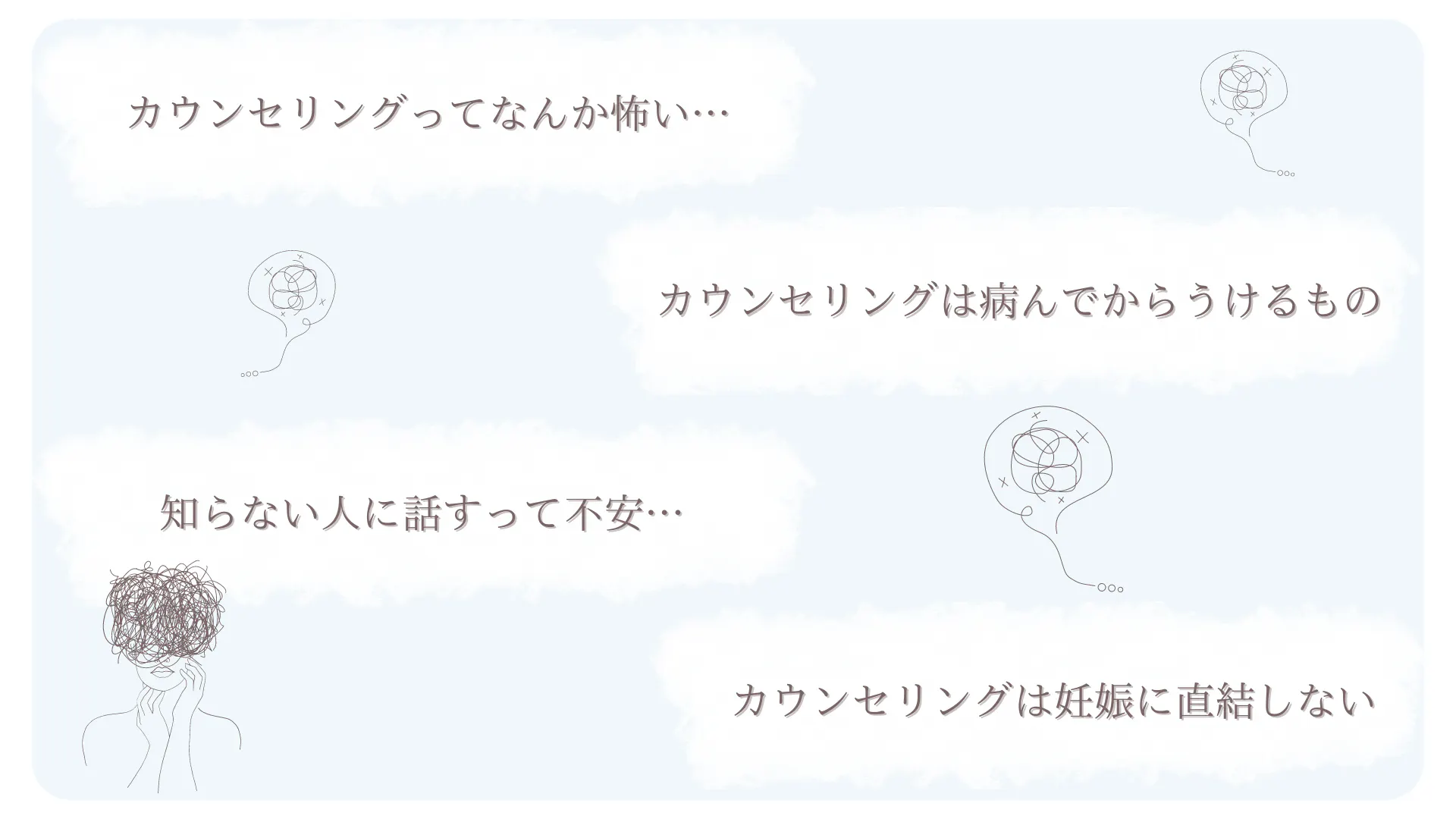 カウンセリングを受けたいと思ってもどこで受けられるのかわからない。そもそもカウンセリングが良いことなのかも、確信が持てない…。