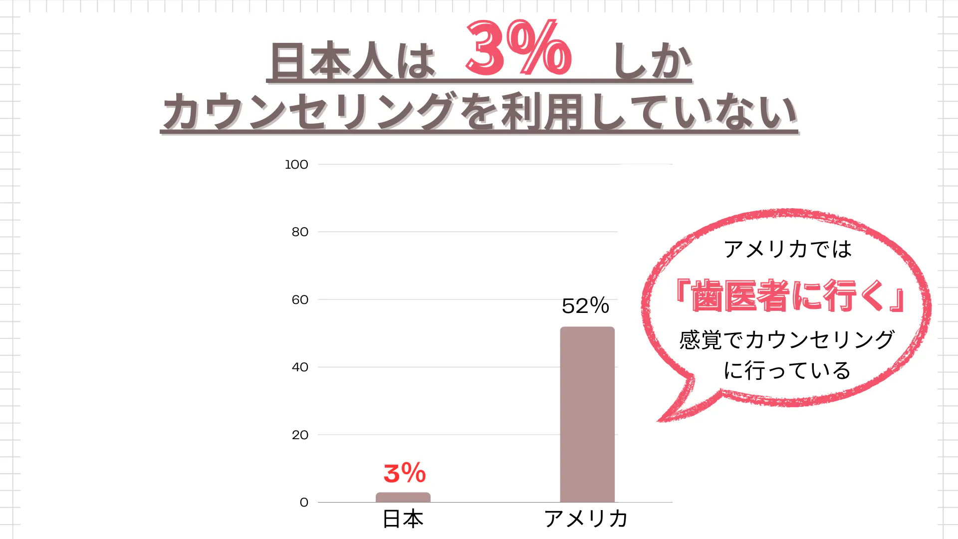 そして一番問題なのは不妊に悩むひとがこれほどのストレスを抱えながらも、カウンセリングのような第三者へ助けを求められていないということです。「カウンセリングを受ける」ということにハードルの高さを感じている人が多くいるように思います。