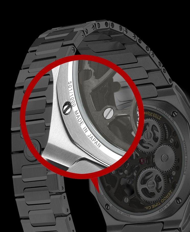 1ミリ以下での細部の調整を重ね、ZEROOウォッチの中では莫大な時間をかけての開発作業となりました。