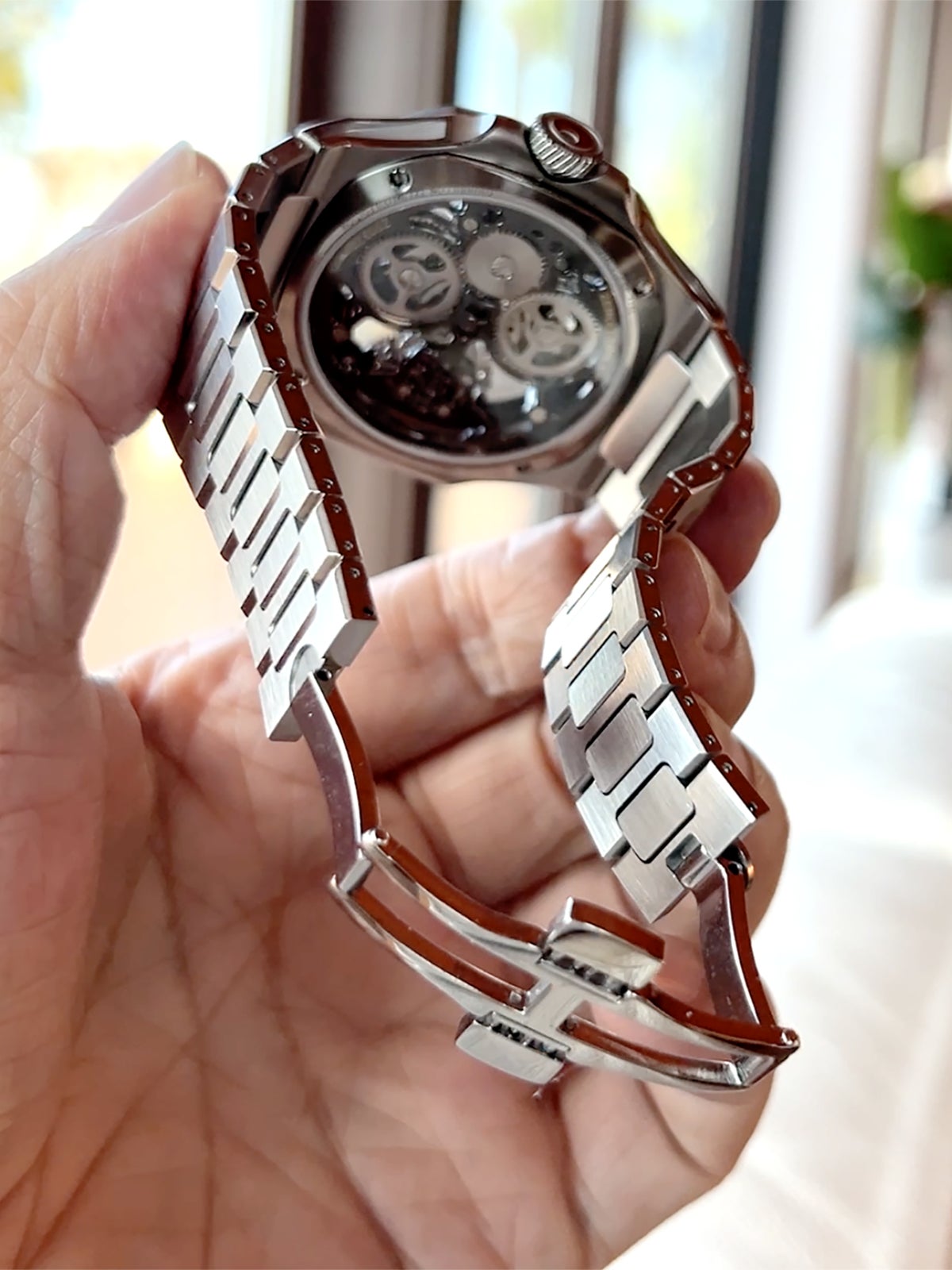 これまでZEROOトゥールビヨンシリーズではラバーストラップを組み合わせることが多く、トゥールビヨンにジャストマッチするブレスレットをお求めになる声も多数寄せられていました。