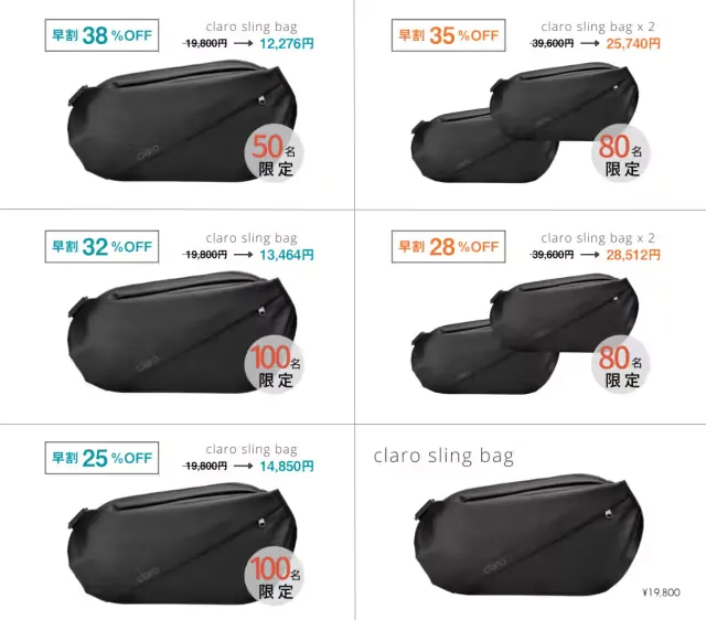 ポケットや手に荷物を持たずにスマートに持ち運ぶために最適化されたサイズ、デザイン、機能性を持つのがclaroスリングバッグです。