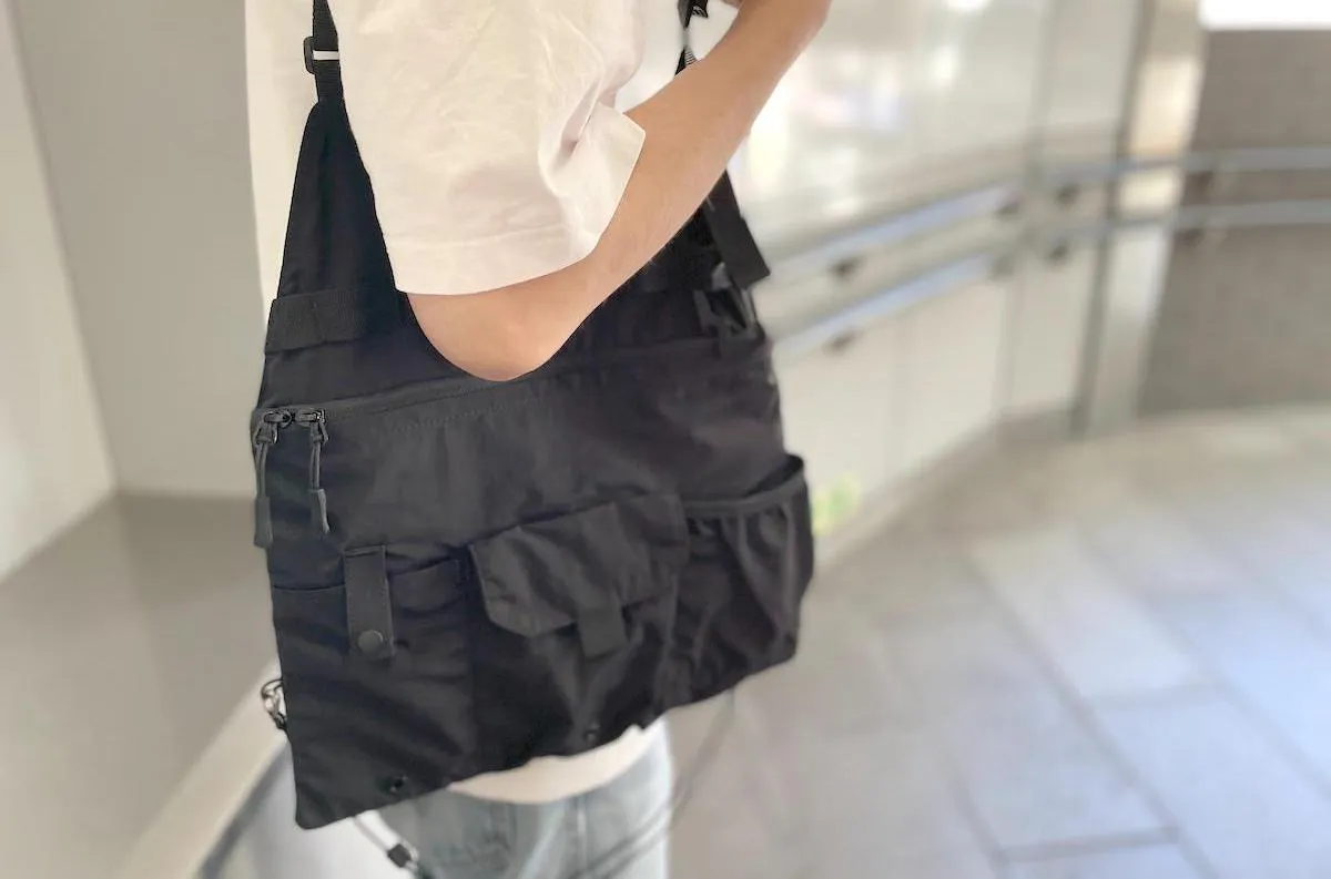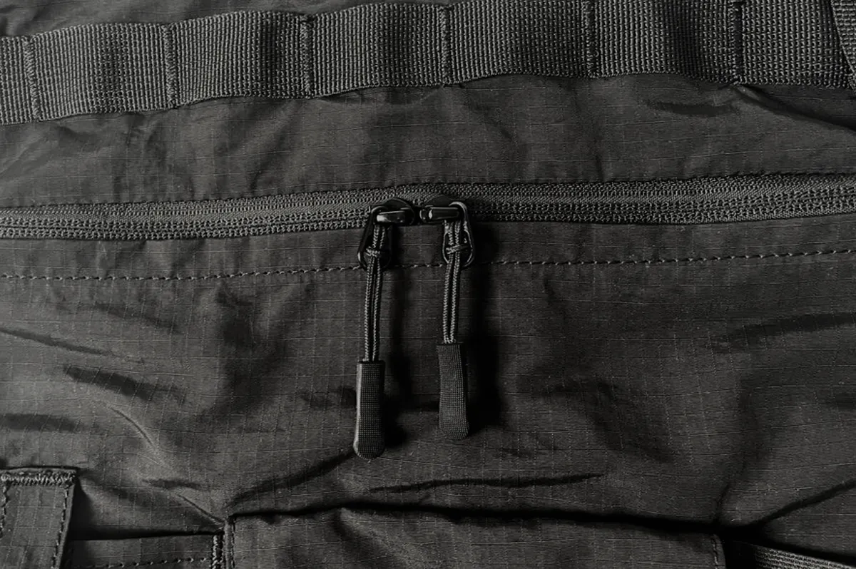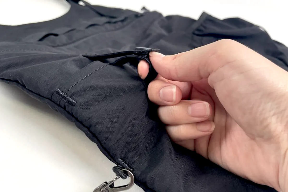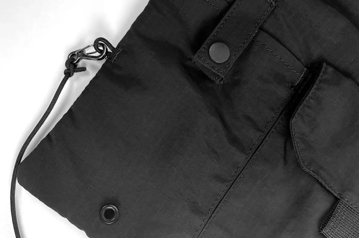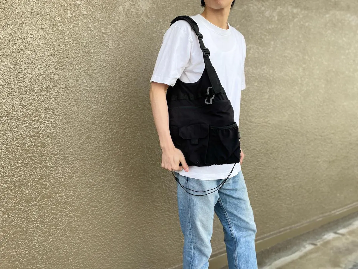 どんなコーディネートにも合わせやすい、リップストップナイロン地のブラックカラーを採用。ミニマルなデザインだからこそ、普段着に合わせても違和感がありません。