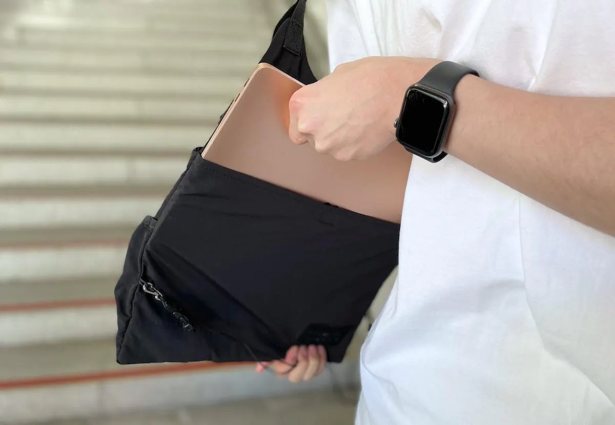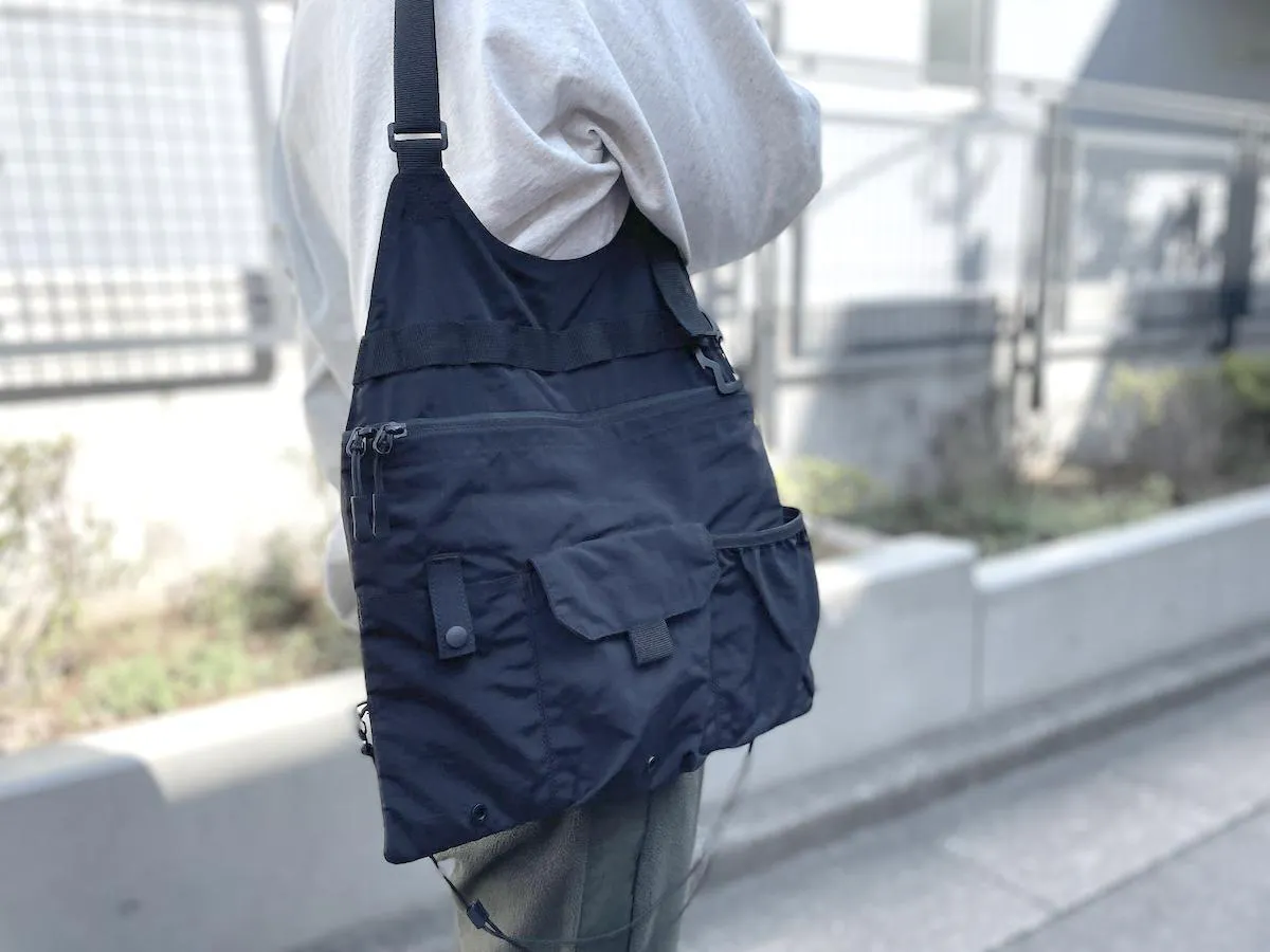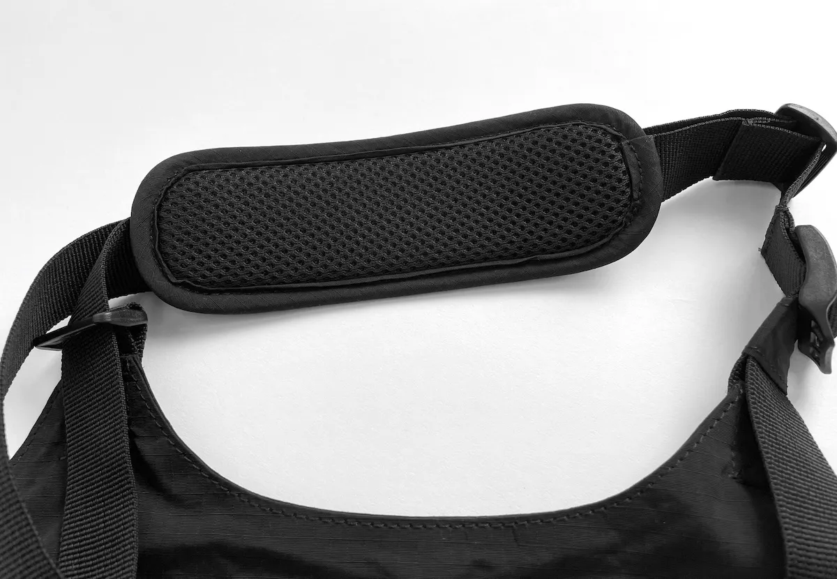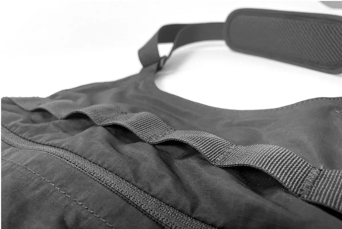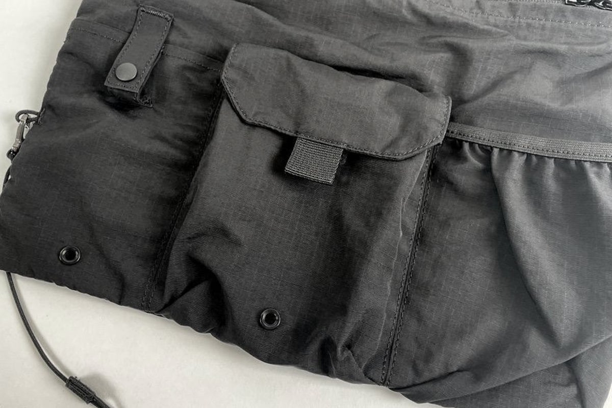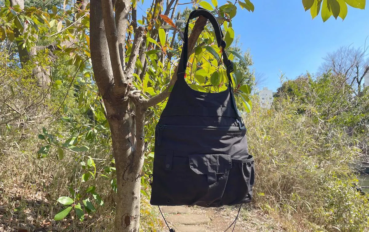 どんなコーディネートにも合わせやすい、リップストップナイロン地のブラックカラーを採用。ミニマルなデザインだからこそ、普段着に合わせても違和感がありません。