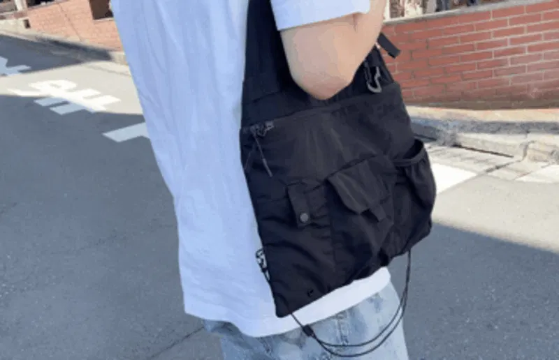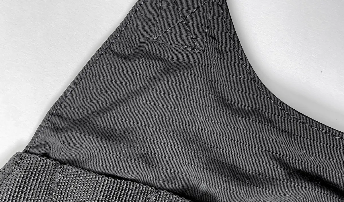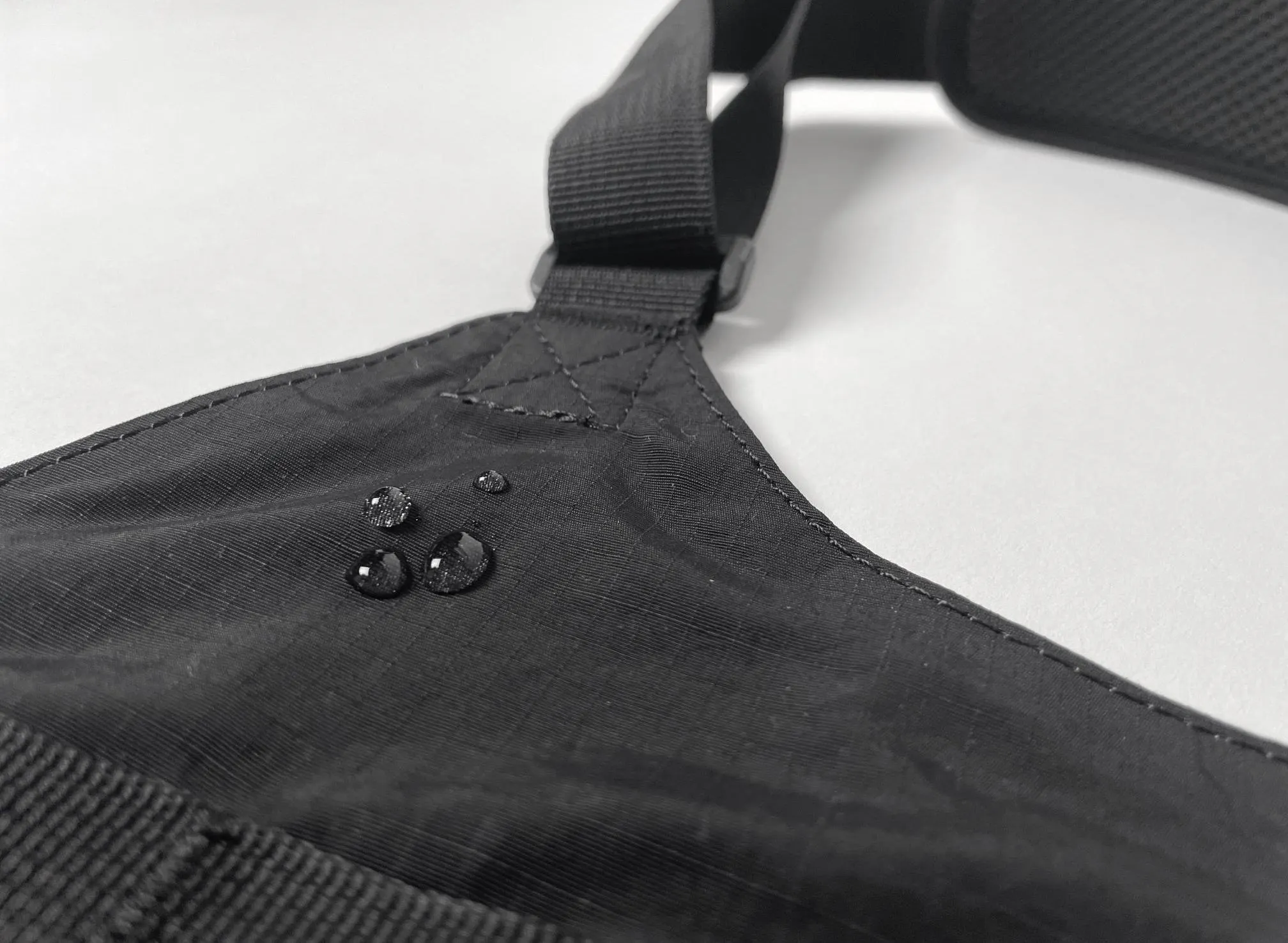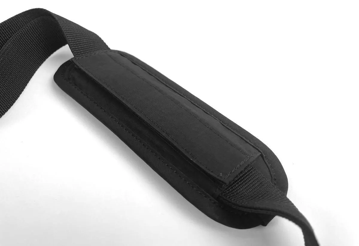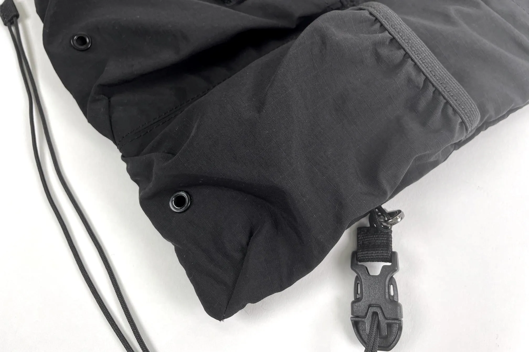 どんなコーディネートにも合わせやすい、リップストップナイロン地のブラックカラーを採用。ミニマルなデザインだからこそ、普段着に合わせても違和感がありません。