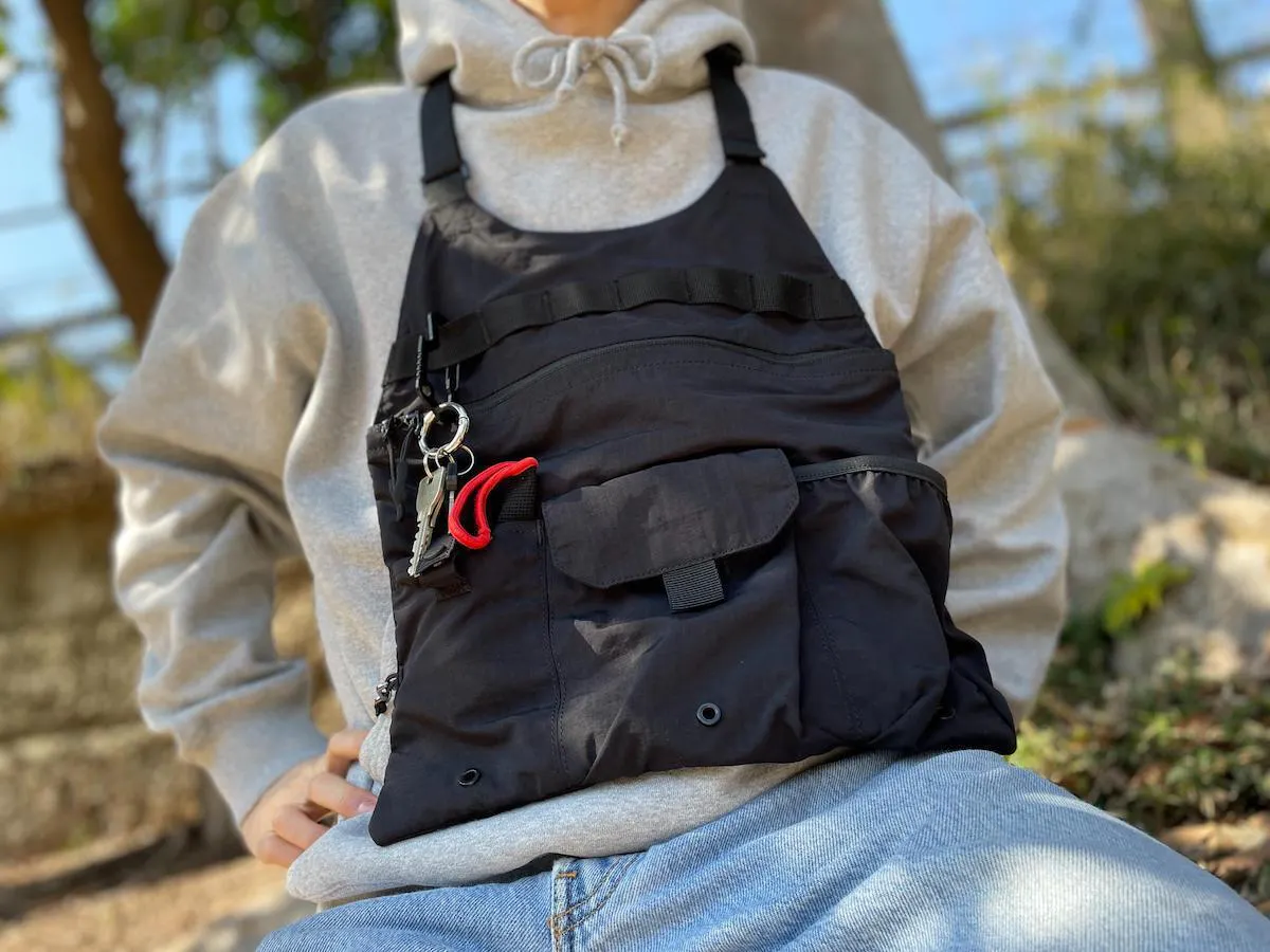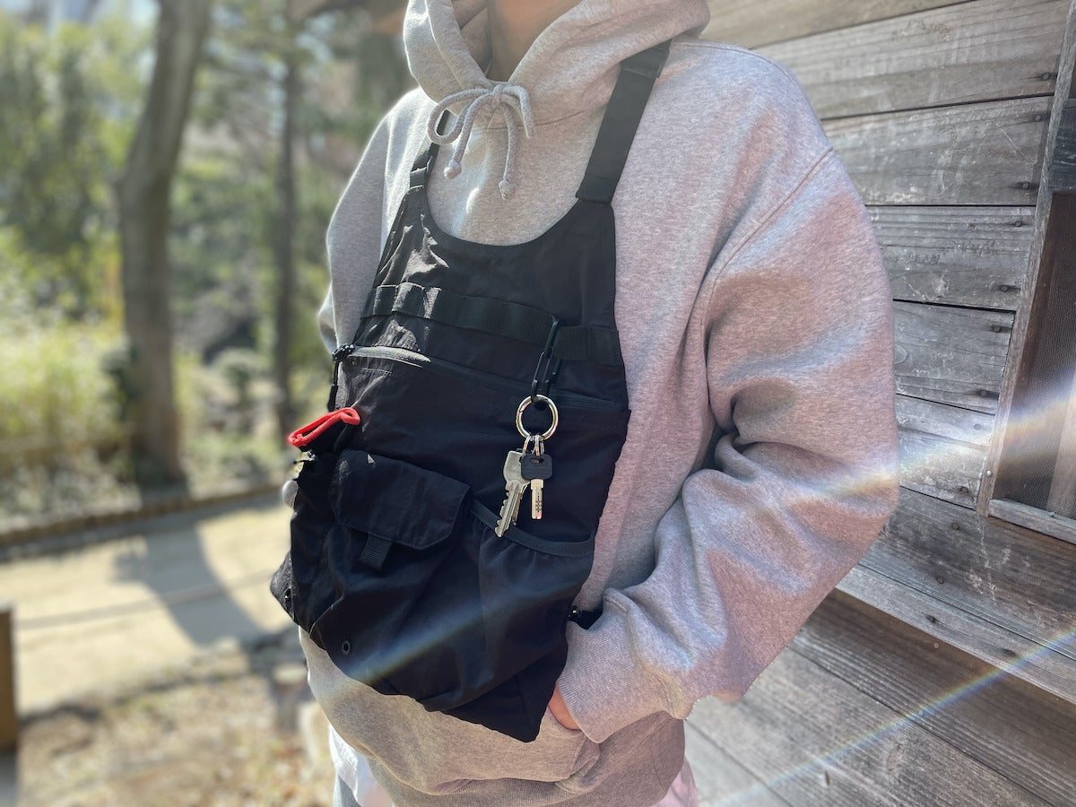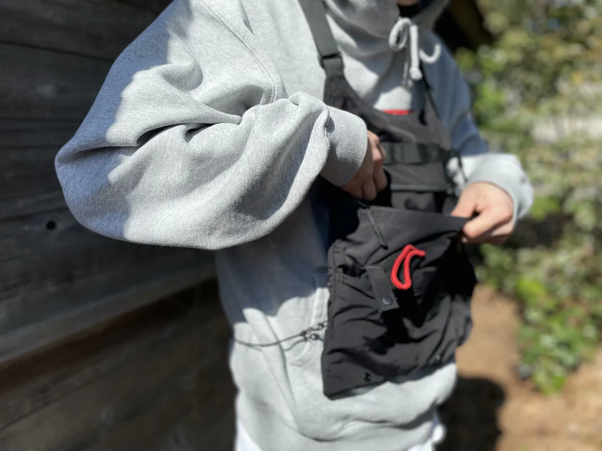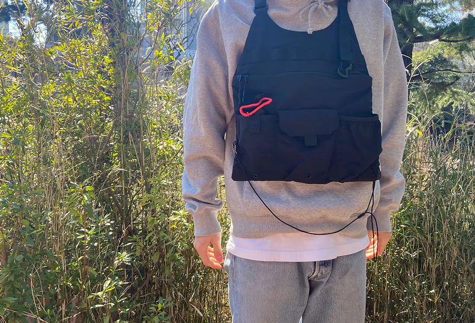 ポケットの便利さがバッグの使いやすさを決めるといっても過言ではありませんが、こちらのベストにはフロント下部に3つのポケットを配置。3つとも微妙に仕様・デザインが違い、自分に合ったオリジナルの用途で使うことができます。