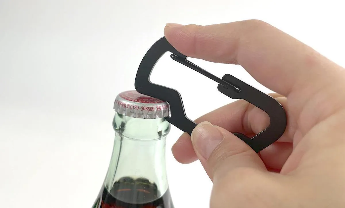 普段は缶ビール派でも、開放的なアウトドアシーンではやっぱり瓶でしょ!と勢いづいたものの、栓抜きがなかった……なんてシチュエーション、あるあるです。そんなときにこのカラビナをさっと出せば、瓶の栓も軽々とオープン。