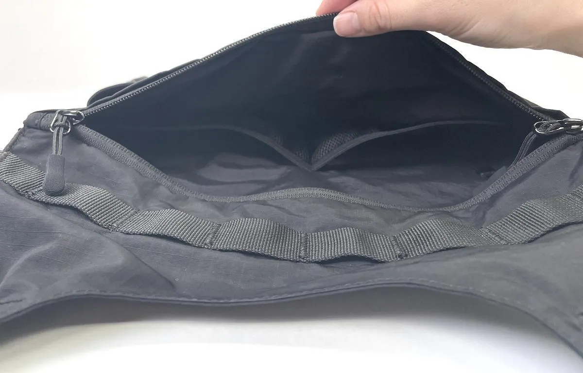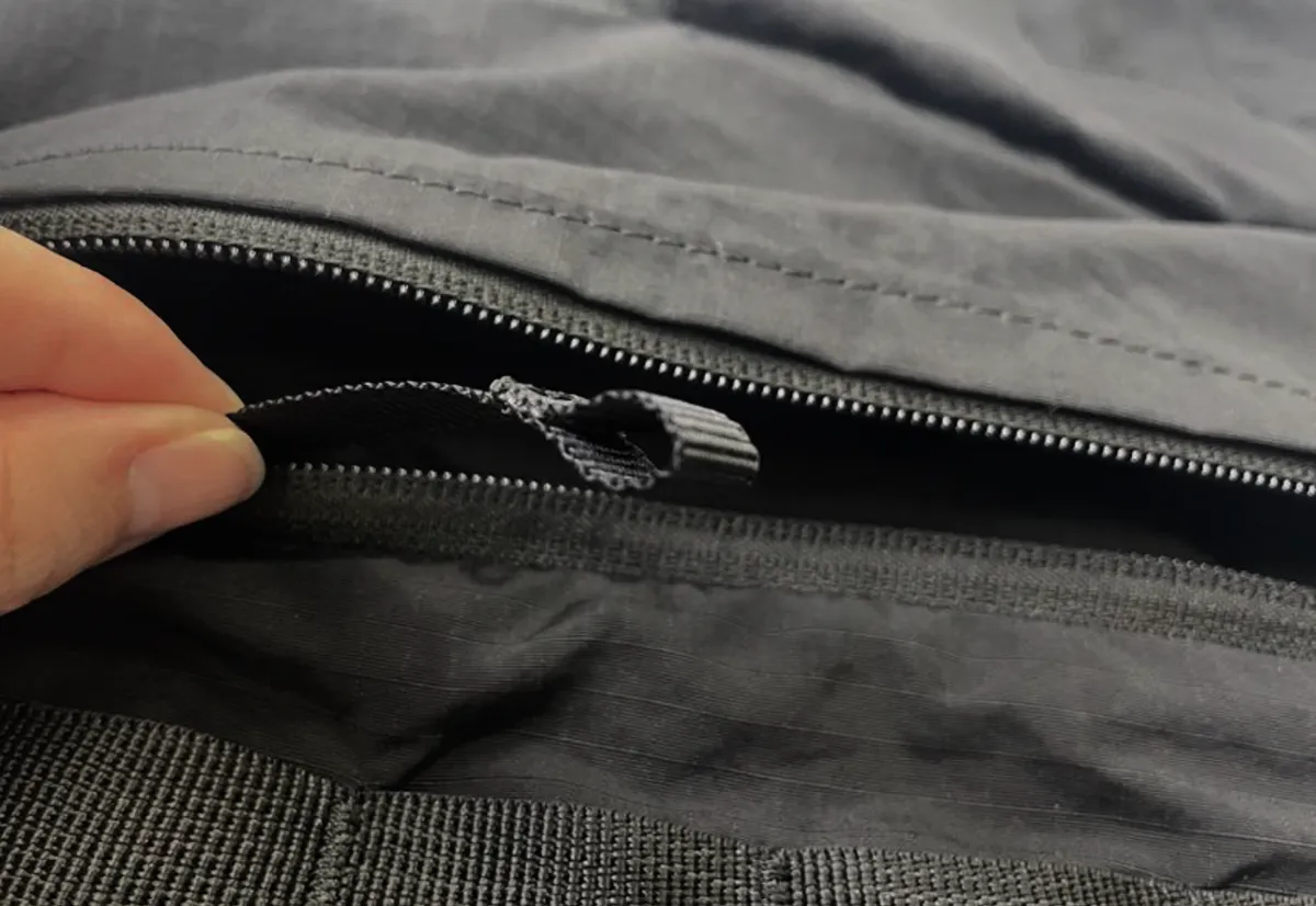 メインポケットはダブルファスナー付き。左右どちらからでもアクセスでき、利き手を問いません。